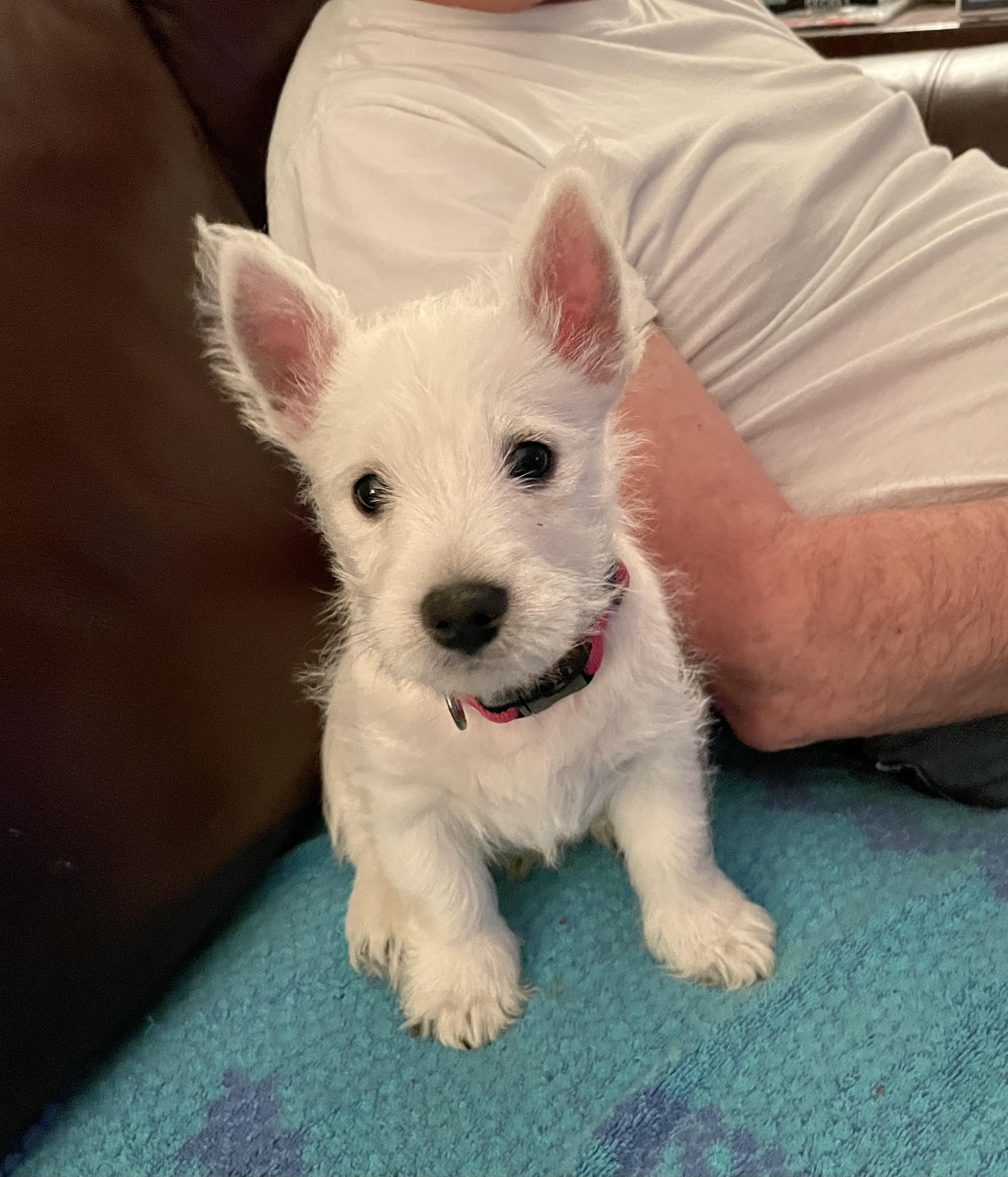 We bought our female from a long-time breeder in the state of Washington. She lit a spark in us and we started to attend local shows. We joined our then local Westie club, Valley of the Sun West Highland White Terrier Club, and got to know other Westie breeders. Our handler finished our then 13-month-old male in January 2020. Our girl finished her grand championship with Margery Good, May 2021.