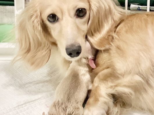 Dovey is a female Dachshund. Carefully selected as a great representative of her breed, Melissa decided to make her part of their program. Melissa has passed Good Dog’s screening process, which involved a review of their breeding practices, environment, and the mental and physical health of their dogs.