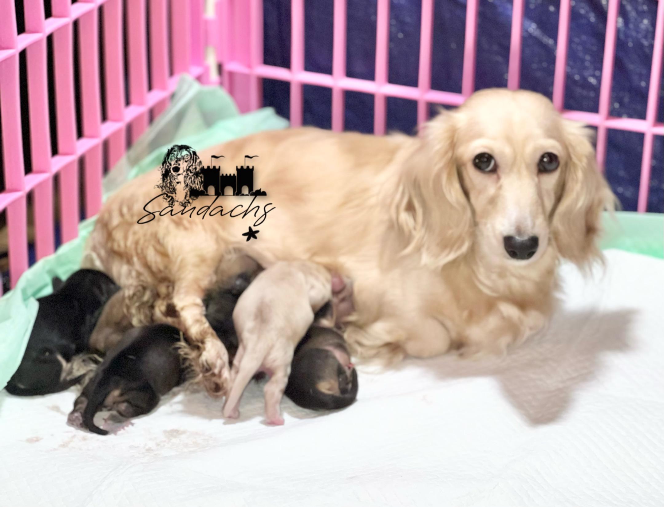Getting our Liam through Sandachs Miniature Dachshunds was a great experience. She was very communicative and provided us with all the information we needed. The puppy is as healthy as possible, and we couldn't be happier! We were given and up to date vet record and a goody bag. This was our first time buying a puppy and we couldn't have found a better person to help us.