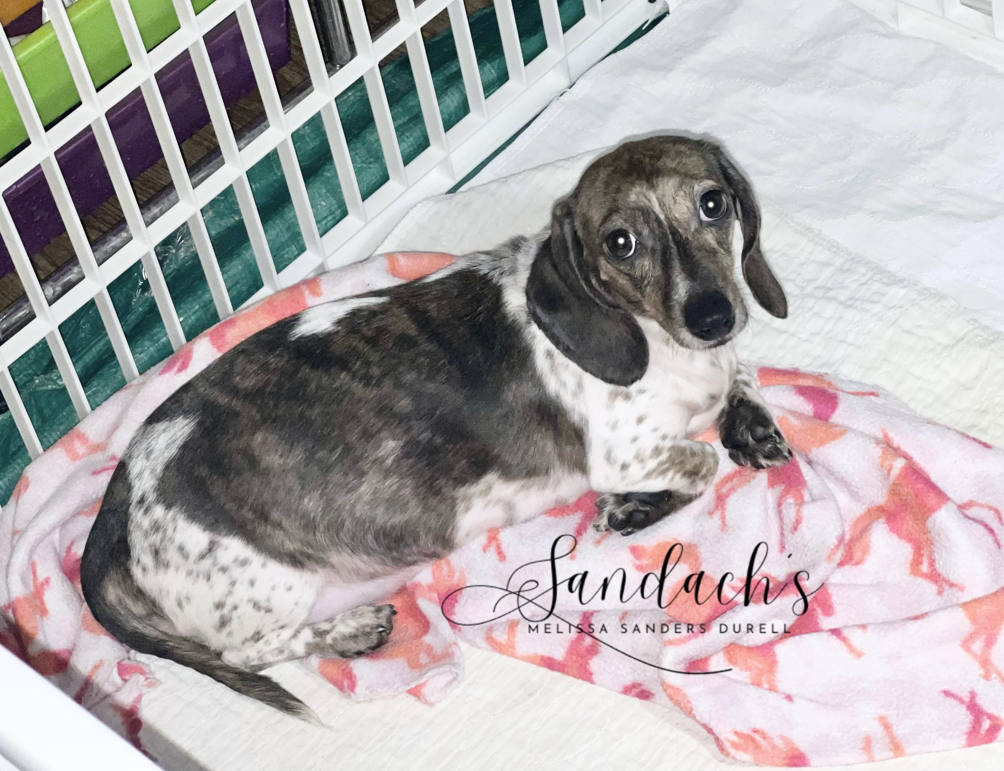 The whole experience I had with Sandach's Miniature Dachshunds went above and beyond of what I could ever dream. Melissa had a quick respond time to answer any questions I had. She sent many pictures and a couple of videos of my Hudson. He is healthy and well loved. Melissa is NOT a puppy mill. She cares for every last puppy and parent. I also asked for a small blanket of mothers scent and Melissa delivered; no questions asked. She treats every last one of her clients with respect `and bends over backwards to help you. My Hudson is my pride and joy and that's all because of Melissa and how she cares for both the puppy and new owner, Thanks to Melissa I have a new best friend.