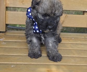 I'm Lisa T., the breeder behind Sandbox Puppies located in Marionville, MO. I'm a home-based breeder of quality Bouvier des Flandres puppies! I have been raising AKC Bouviers since the '80s. This is a truly extraordinary breed with non-shedding/hypo-allergenic coats, intelligence, intuitive nature, and trainability. Their laid-back nature and gentle temperament make Bouviers an ideal family breed AND the best dog you will own - come see for yourself! All puppies are sold with limited registration(no breeding).