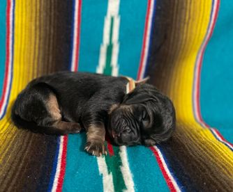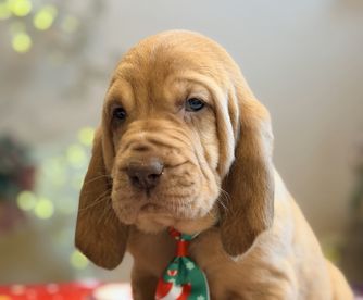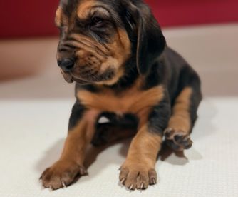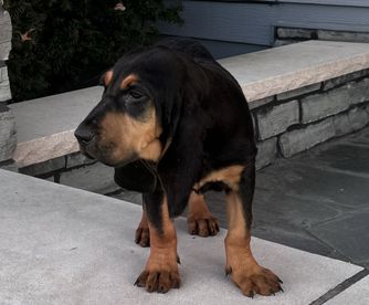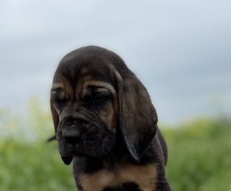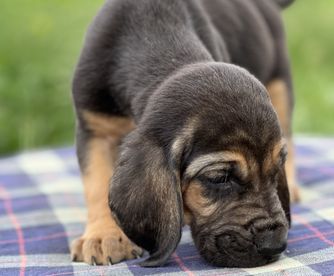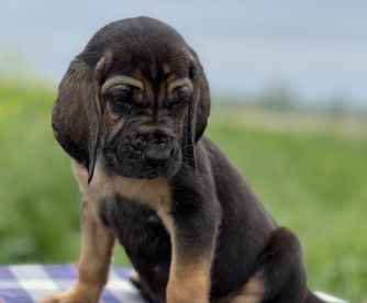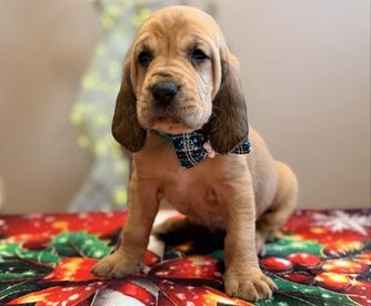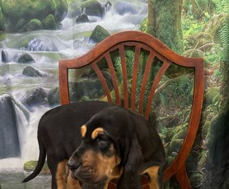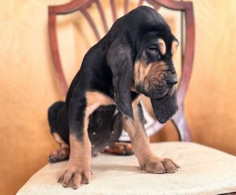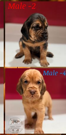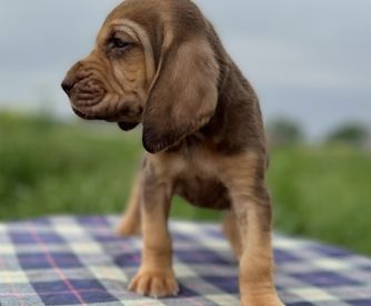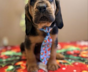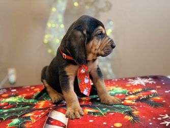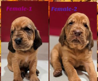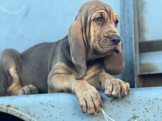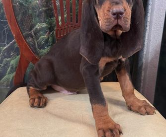 Bloodhound puppies include liver and tan, red, and black and tan. Colors will vary depending on the parent dogs.