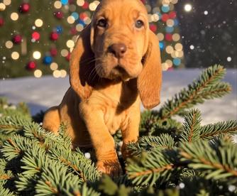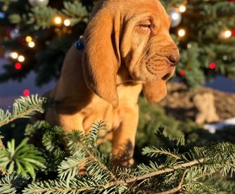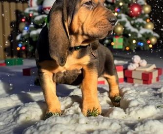 Our Bloodhound puppies include liver and tan, red, and black and tan. Colors will vary depending on the parent dogs.