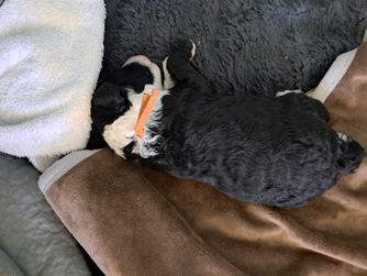 Dixie is a female Sheepadoodle. Carefully selected as a great representative of her breed, Kathy decided to make her part of their program. Kathy has passed Good Dog’s screening process, which involved a review of their breeding practices, environment, and the mental and physical health of their dogs.
