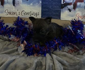 I'm Darena V., the breeder behind Sandhills Edge Equine Massage and Scottish Terriers located in Gore, OK. I am fascinated by their large dog capabilities. Our goal is to ensure every dog that comes from our program is set up to live a happy and healthy life! Our pups are raised in our home and are loved as family. We provide each of our pups with lots of socialization and love, and we are dedicated to maintaining responsible breeding policies.