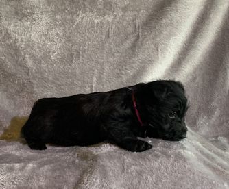 MaeBelle is a female Scottish Terrier. Carefully selected as a great representative of her breed, Darena decided to make her part of their program. Darena has passed Good Dog’s screening process, which involved a review of their breeding practices, environment, and the mental and physical health of their dogs.