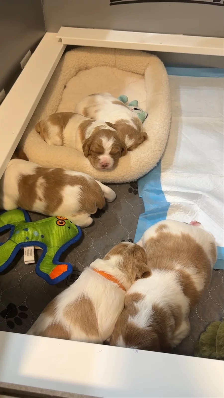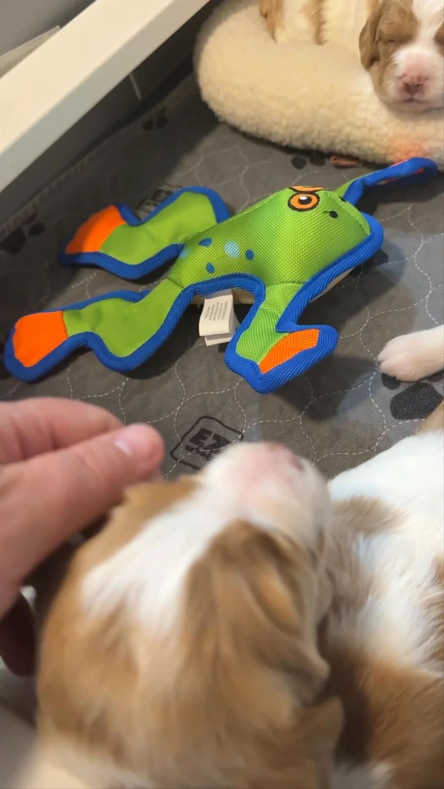 Puppies are doing great and growing, everyone is now over a pound. We started ENS which is early neurological stimulation performed over the first 2 weeks of the puppies lives, it exposes them to brief moments of adversity. It has been proven that puppies who have ENS performed have increased stress and disease tolerance.