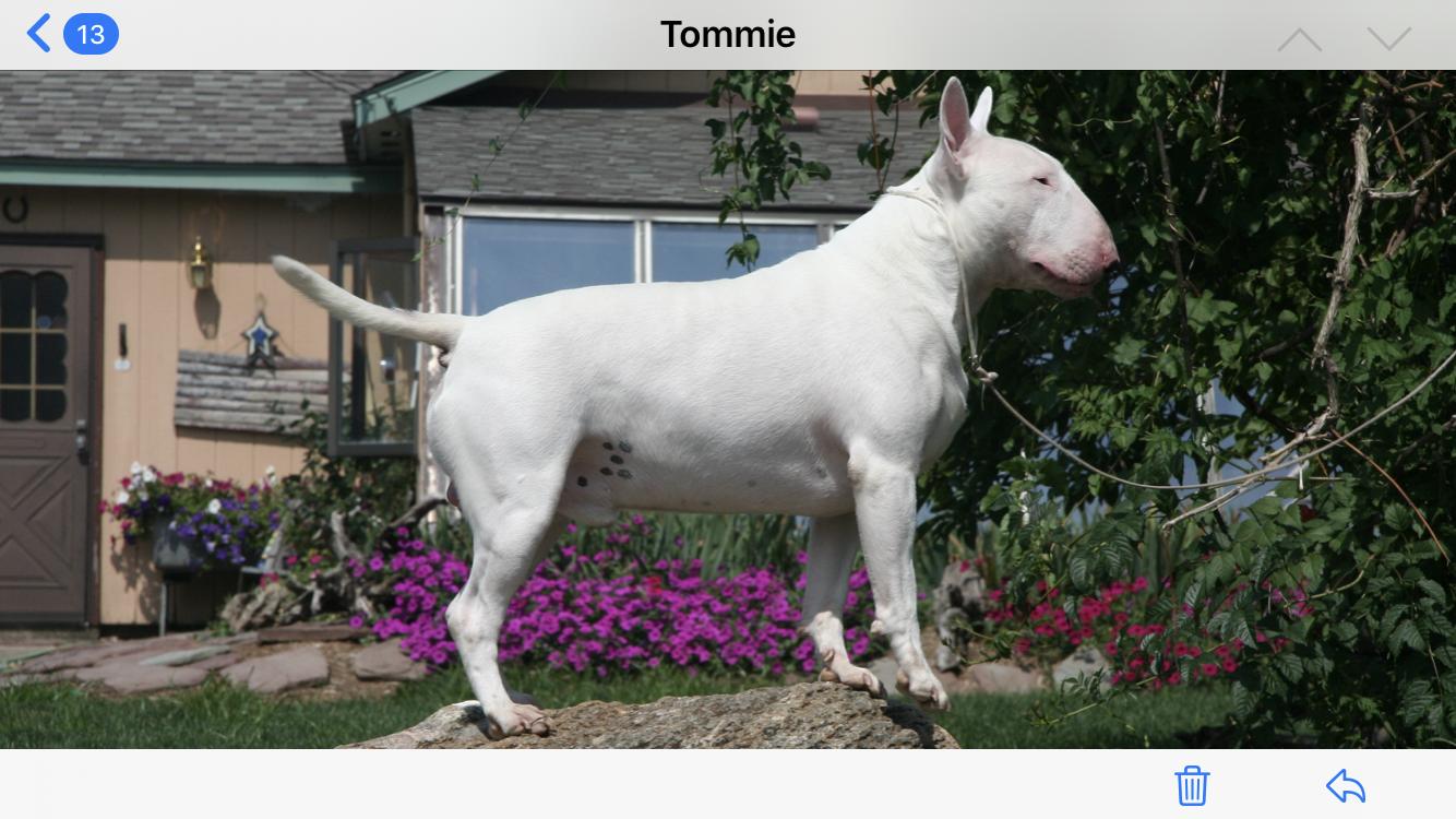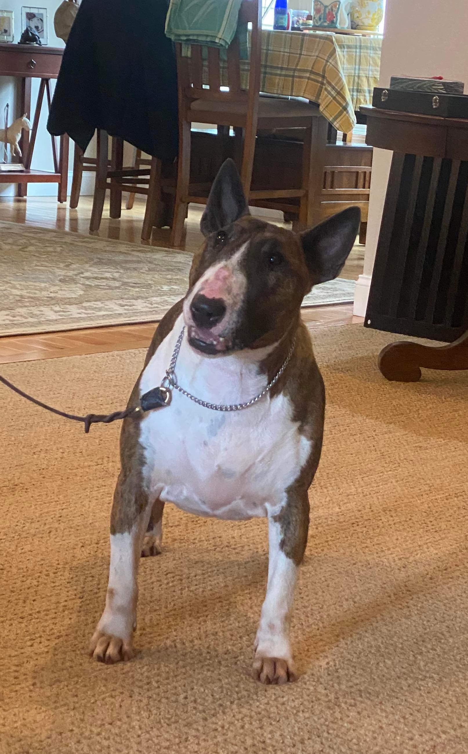 Tommie is a male Bull Terrier. Carefully selected as a great representative of his breed, Melanie decided to make him part of their program. Melanie has passed Good Dog’s screening process, which involved a review of their breeding practices, environment, and the mental and physical health of their dogs.