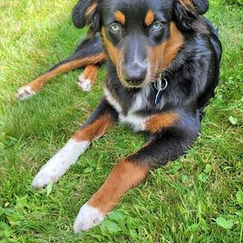 We are totally pleased with both the purchase experience with Megan and Sandy Aussies & Pomeranians as well as with our wonderful new family member, Daisy! Typical of Australian Shepherds, our puppy (now 5 months old) is full of energy, extremely social, and highly intelligent. Beyond those breed traits, it is clear that there were some excellent genetics involved. Daisy was fully house-trained in slightly over two weeks, learned basic commands, and is simply a wonderful companion. She is beautiful, looking very much like her mother. I was sold on her photo, but it was mutual love at first sight when Megan handed the puppy (then called Song) over to me for the ride home. We had a sad experience with our previous Aussie, who came from a different breeder and had a congenital kidney disease that led to kidney failure and euthanasia at the age of only 4 1/2 years. Daisy checked out as totally healthy, which is truly a relief.