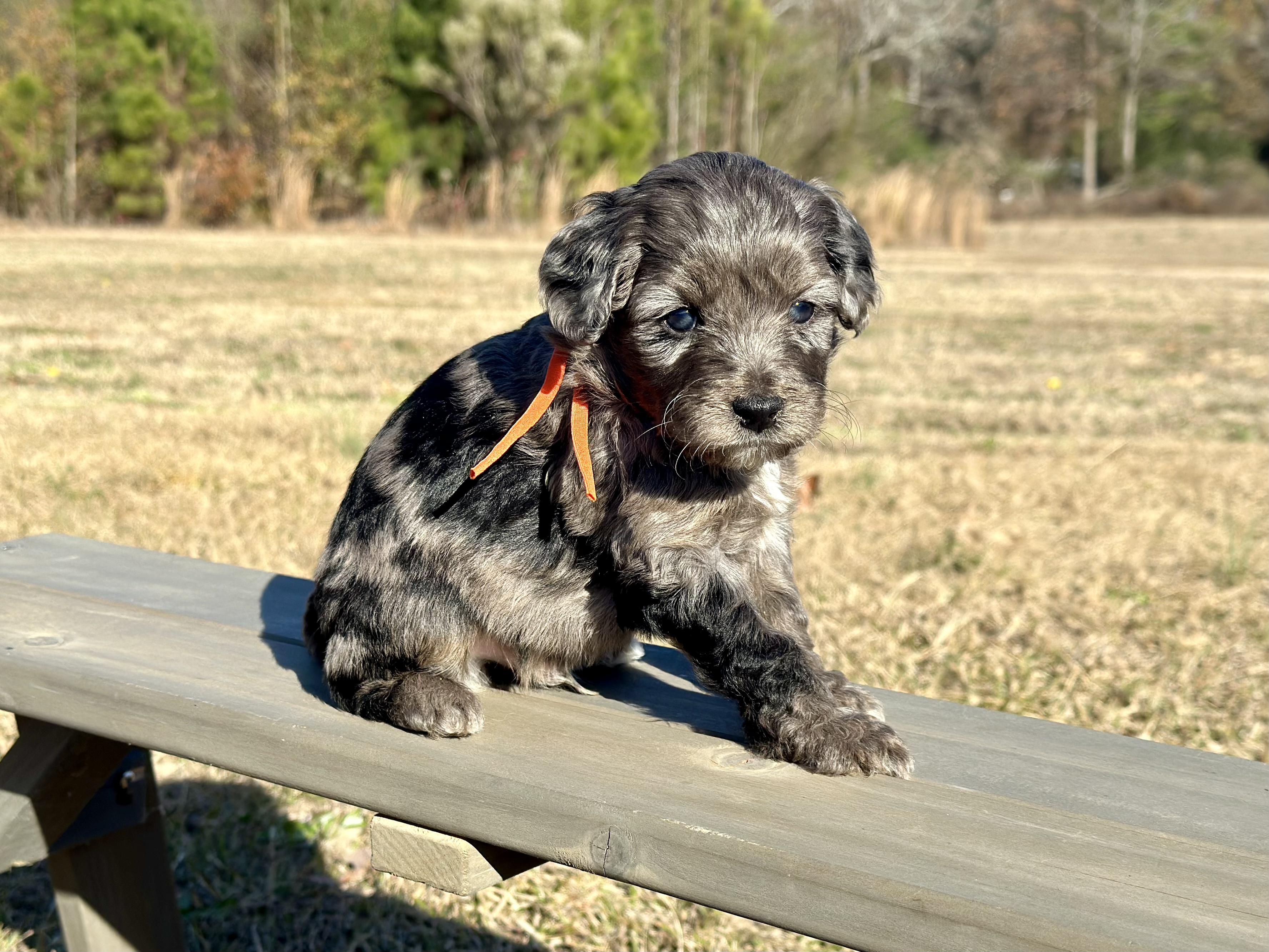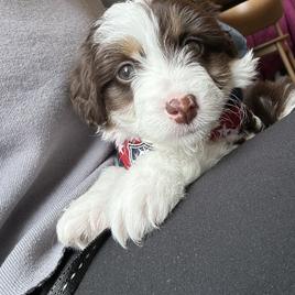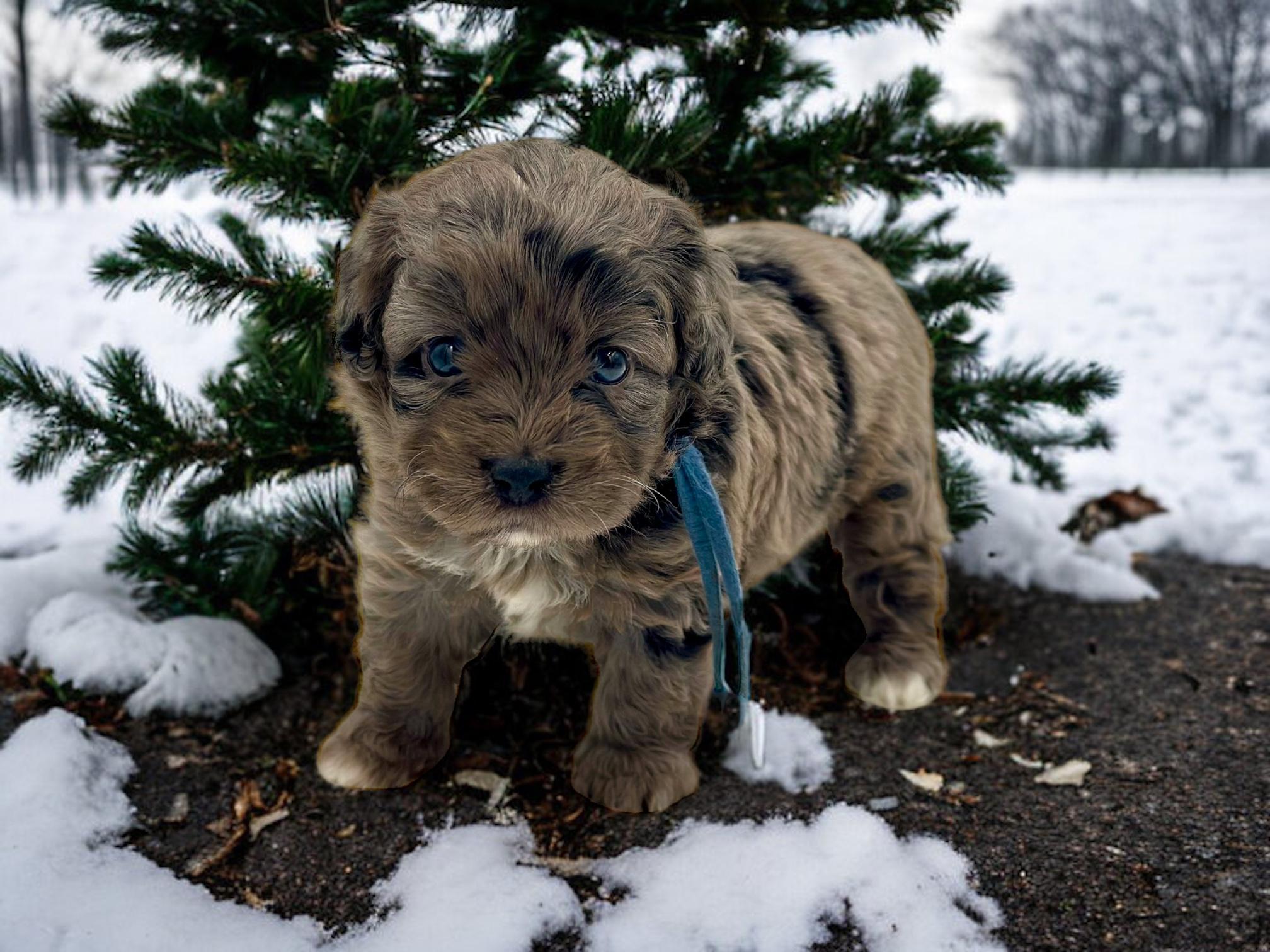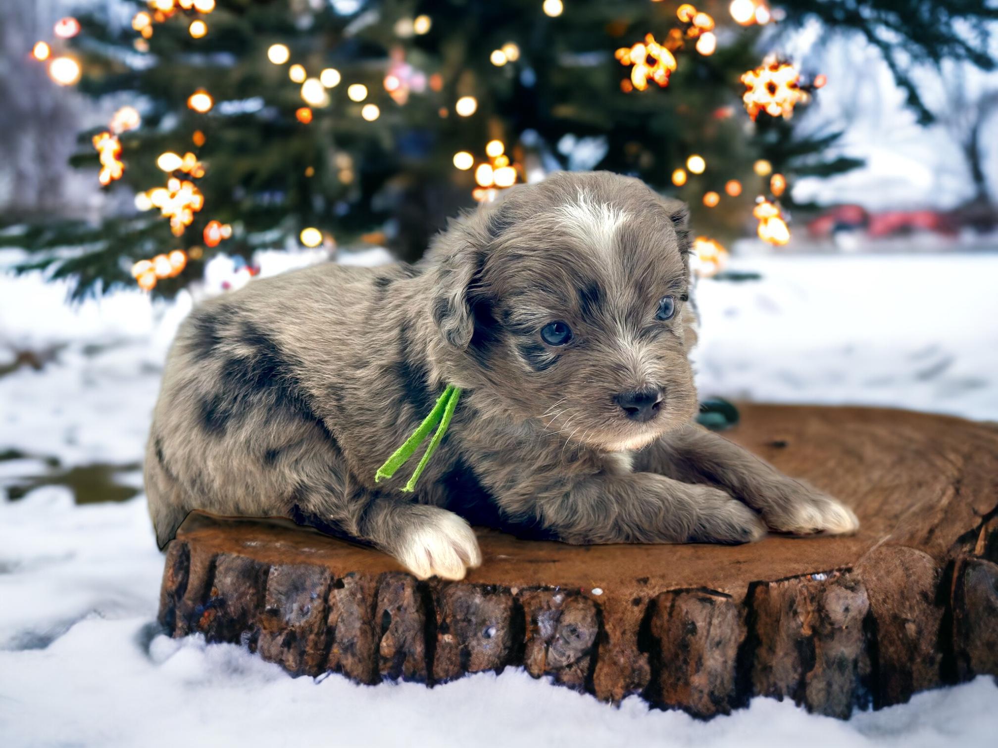 Our Miniature Australian Shepherd puppies include blue merle, black tri, red tri, and red merle. Poodle puppies include sable, apricot, black, cream, red, and parti. Toy Australian Shepherd puppies include black tri, blue merle, red merle, and red tri. Aussiedoodle puppies include sable, blue merle, red merle, black and white, black tri-color, and red tri-color. Colors will vary depending on the parent dogs.