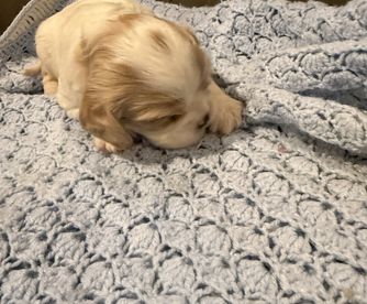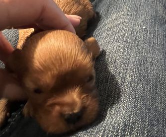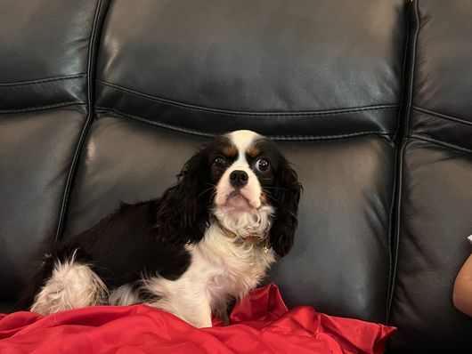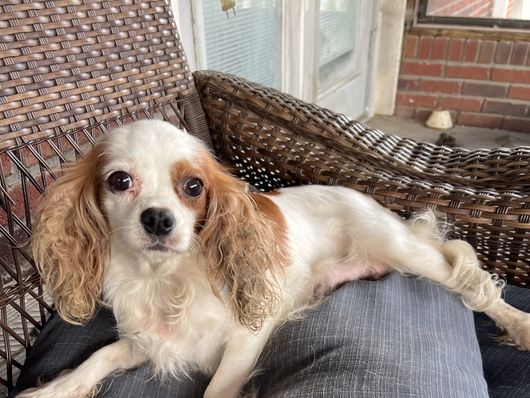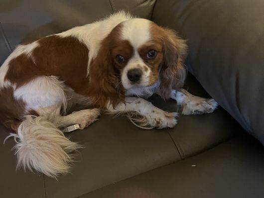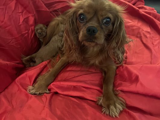 Absolutely beautiful female solid ruby Cavalier King Charles Spaniel. Very spoiled and thinks she is human. Sweetest personality.