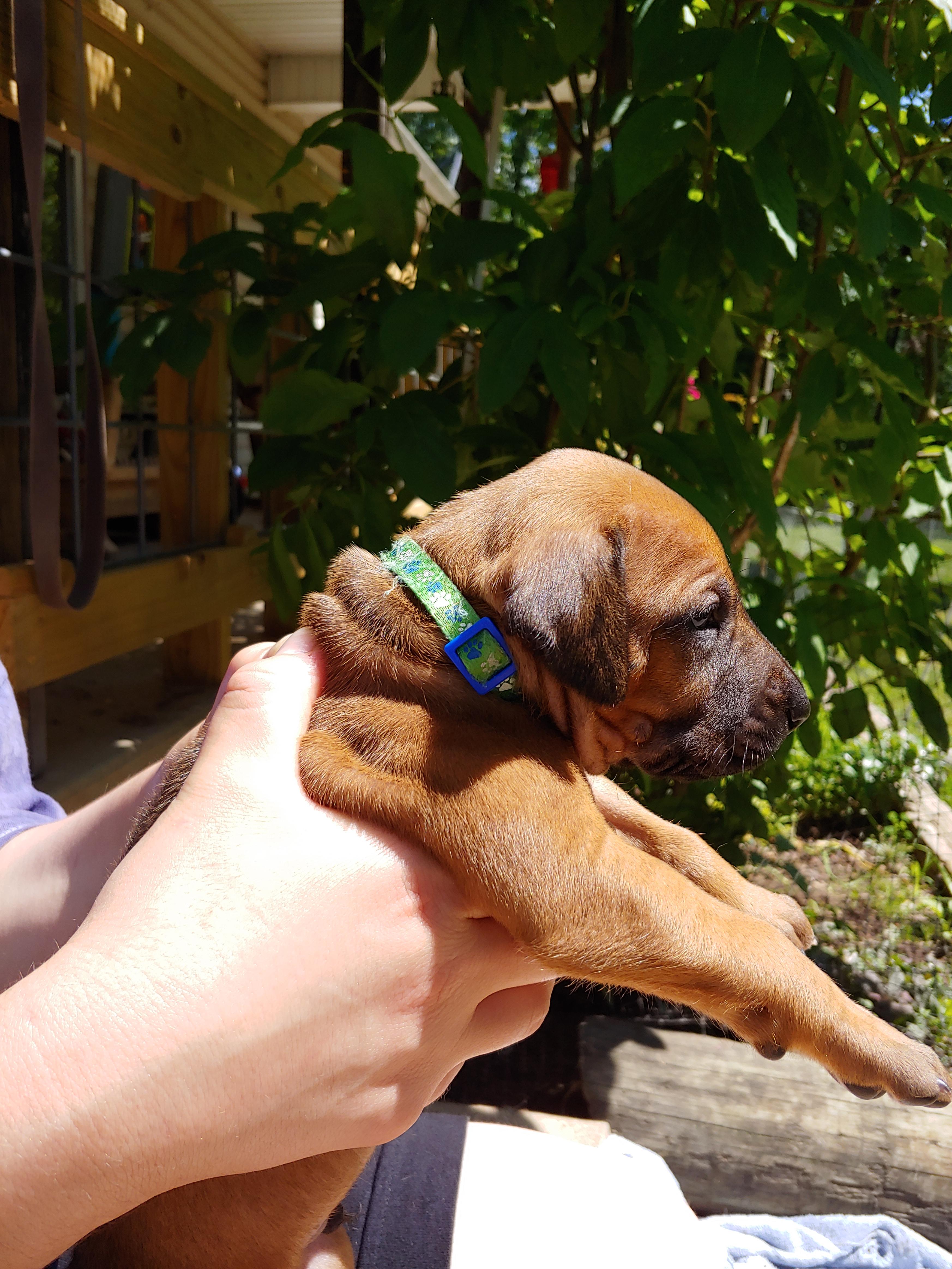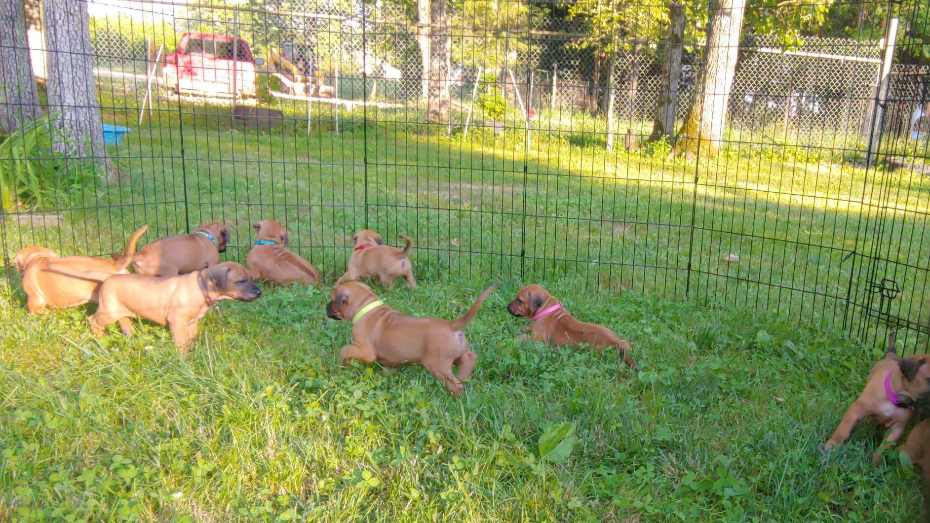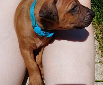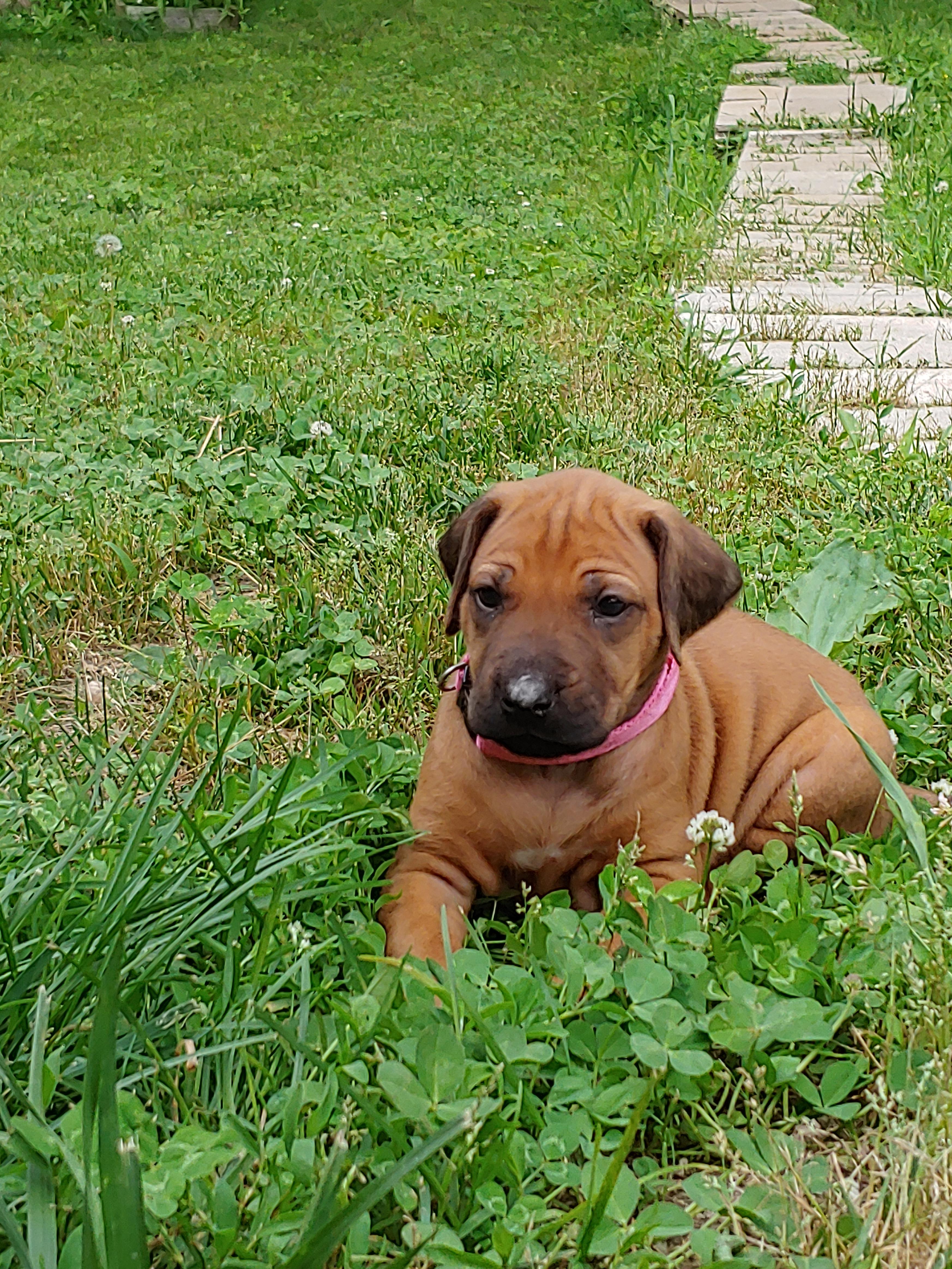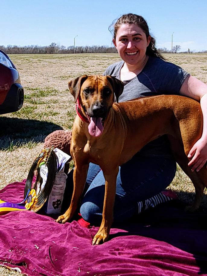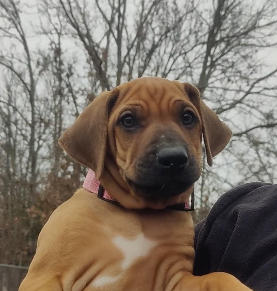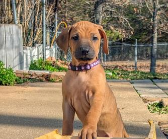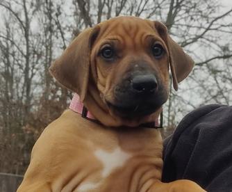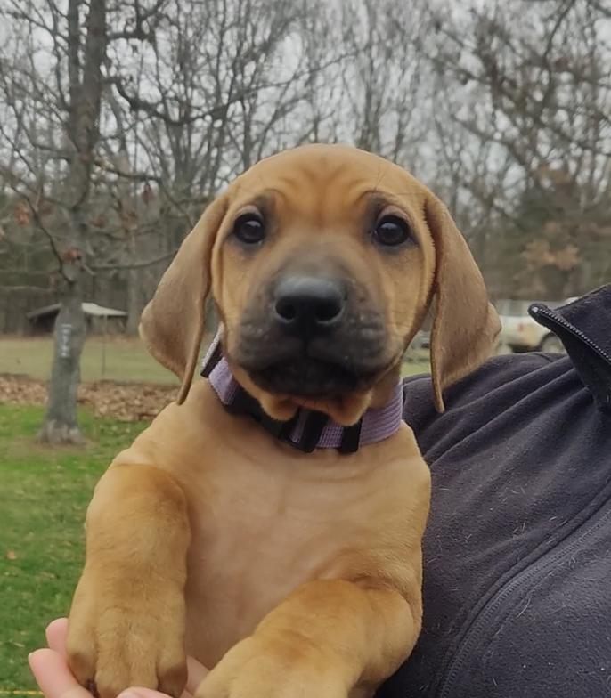 I'm Wendi S., the breeder behind Sans Peur Ridgebacks located in Fort Leonard Wood, MO. Our puppies are raised in our home, not a kennel, with all the sounds and socialization that enables. They learn to interact with children, dogs other than their mother, and cats. In addition to showing/competing for conformation and performance, I breed for TEMPERAMENT-Show dogs you can live with.