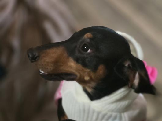 Otto is a happy go luck Doxie. He loves his ball , sitting on our laps, and going to Starbucks. He is a black and cream miniature. His mother is Tootie.