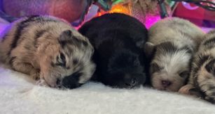 Our puppies include cream, black, white, chocolate, black and tan, chocolate and tan, chocolate merle, and blue merle. Colors will vary depending on the parent dogs.