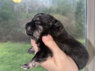 Gorgeous, solid black girl who carries chocolate Luna was born and raised in my home and I’m excited for her to have her first litter