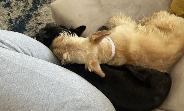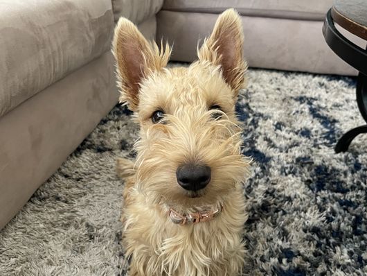 Sweet as her name, wild at heart. Peach is our cuddly little Wheaten Scottish Terrier who’s just as happy snuggling on the couch as she is as chasing potential threats away(Those CATS!) Full of life and the right amount of sass—she’s a total sweetheart with a playful streak!
