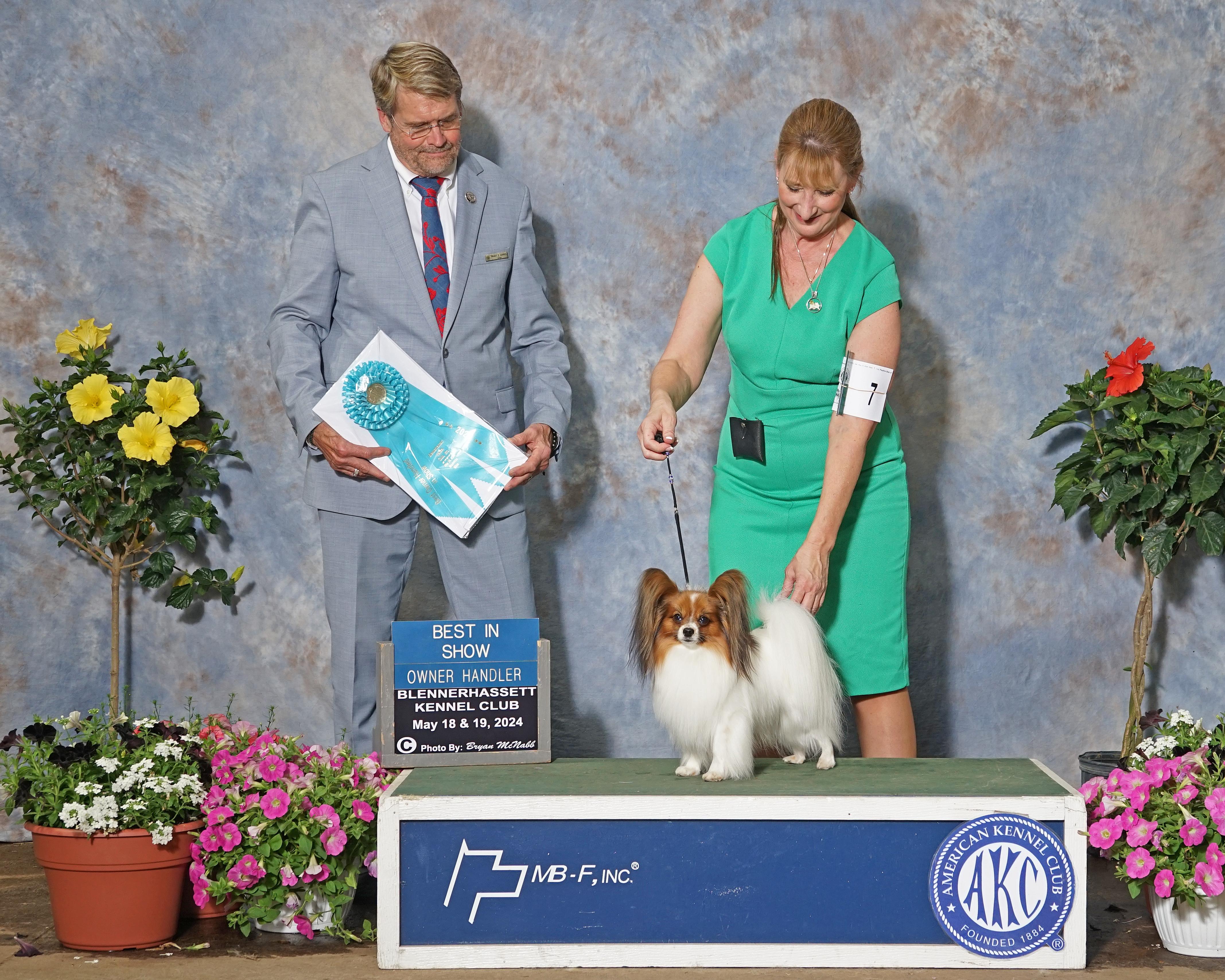 I started my breeding program when I fell in love with the papillon. This smart and energetic breed keeps you going. They are lap dogs and love to work, whether it is showing, competing in agility or running fast cat.