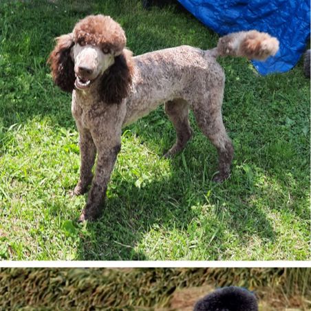 My first Poodle in 1982 was a gorgeous apricot out of an AKC top producer. I was entrusted with an unrelated female from the same breeder so that she could mentor me. I bred a few mini and toy litters over the years, took a break for 15 years to run a cake biz and now we're back and working with solid and multi-color standards.