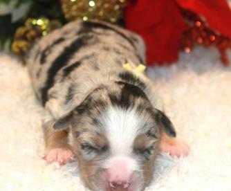 Our Miniature Australian Shepherd puppies include blue merle, red merle, red, and black. Aussiedoodle puppies include blue merle, red merle, black and white, black tri-color, and red tri-color. Toy Australian Shepherd puppies include black tri, blue merle, and red merle. Colors will vary depending on the parent dogs.
