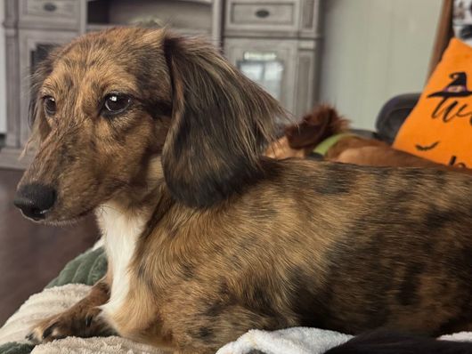 Violence is a female Dachshund. Carefully selected as a great representative of her breed, Sarah decided to make her part of their program. Sarah has passed Good Dog’s screening process, which involved a review of their breeding practices, environment, and the mental and physical health of their dogs.