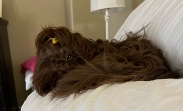 Little Bit is a female Shih Tzu. Carefully selected as a great representative of her breed, Sara decided to make her part of their program. Sara has passed Good Dog’s screening process, which involved a review of their breeding practices, environment, and the mental and physical health of their dogs.