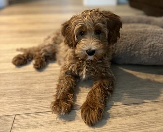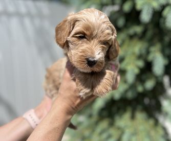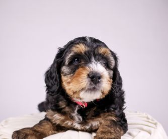 Our Bernedoodle puppies include tri-color and phantom. Australian Labradoodle puppies include red, chocolate, and tri-color. Colors will vary depending on the parent dogs.