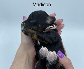 Our Bernedoodle puppies are mini size. Australian Labradoodle puppies include miniature and medium sizes. Sizes will vary depending on the parent dogs.