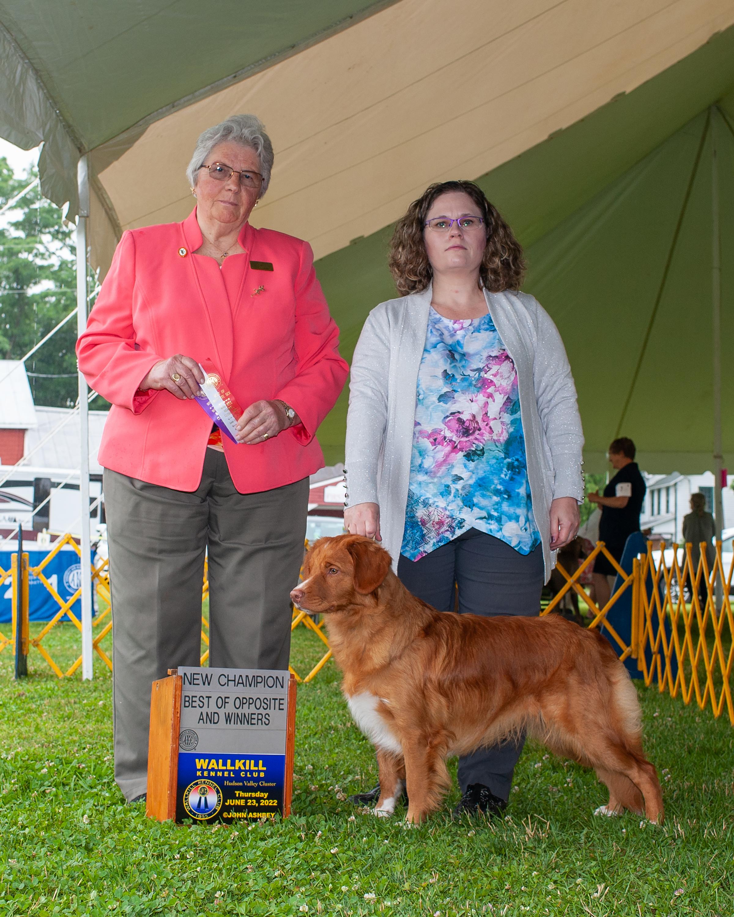 Mabel is a female Nova Scotia Duck Tolling Retriever about 4 years old. Carefully selected as a great representative of her breed, Cara decided to make her part of their program. Cara has passed Good Dog’s screening process, which involved a review of their breeding practices, environment, and the mental and physical health of their dogs.