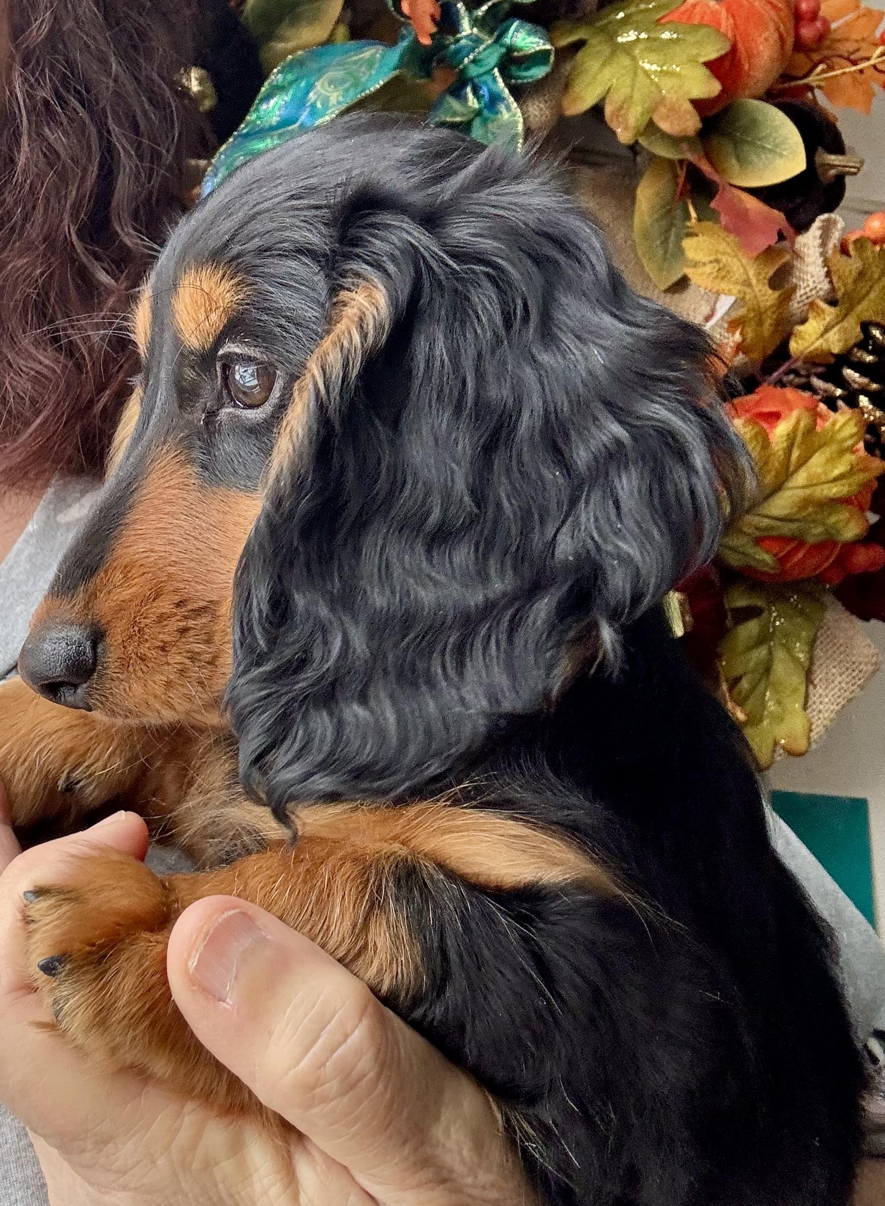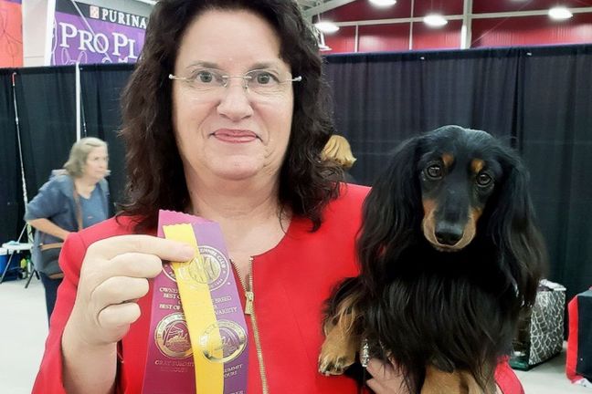 I'm Sabine R., the breeder behind Sarou's Miniature Dachshunds located in Freeburg, IL. My passion is breed preservation of the longhaired Miniature Dachshund. I enjoy showing my dogs at AKC events.