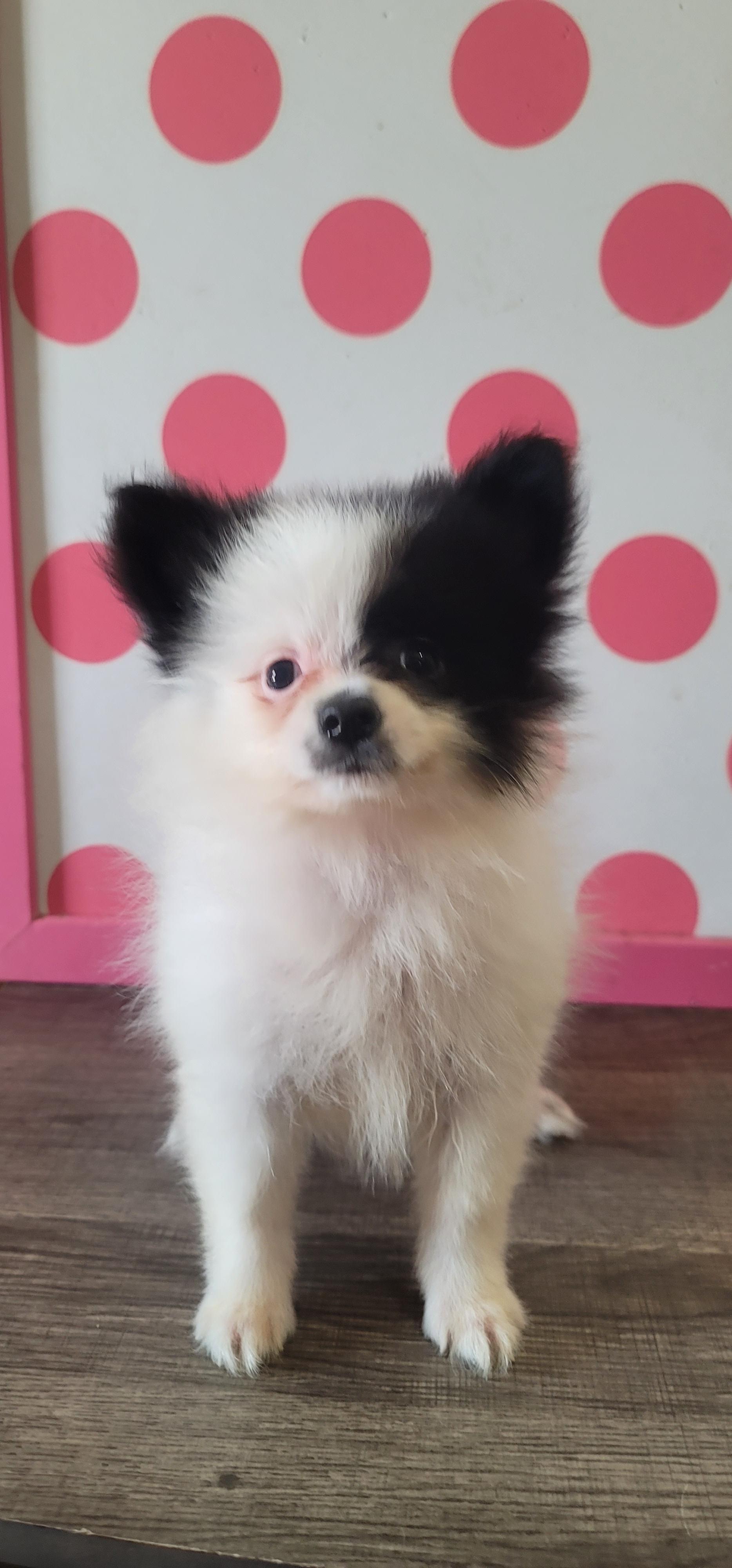 Tink is a female Pomeranian. Carefully selected as a great representative of her breed, Ana decided to make her part of their program. Ana has passed Good Dog’s screening process, which involved a review of their breeding practices, environment, and the mental and physical health of their dogs.