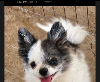 Colores is a sweetheart, she loves to cuddle and be by your side at all times. Very calm and playful with others. 5lbs max weight.