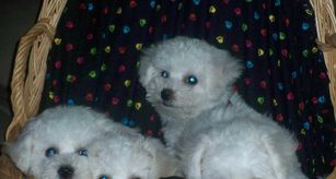 Our breeding program produces beautiful, healthy Bichons. The puppies that are for sale are the descendants of generations of show dogs, but have a trait or two that is not ideal for showing, however they are still regal and lovable dogs! We raise our pups in our own bedroom and then family room, treating them with the attention they need to join your family.