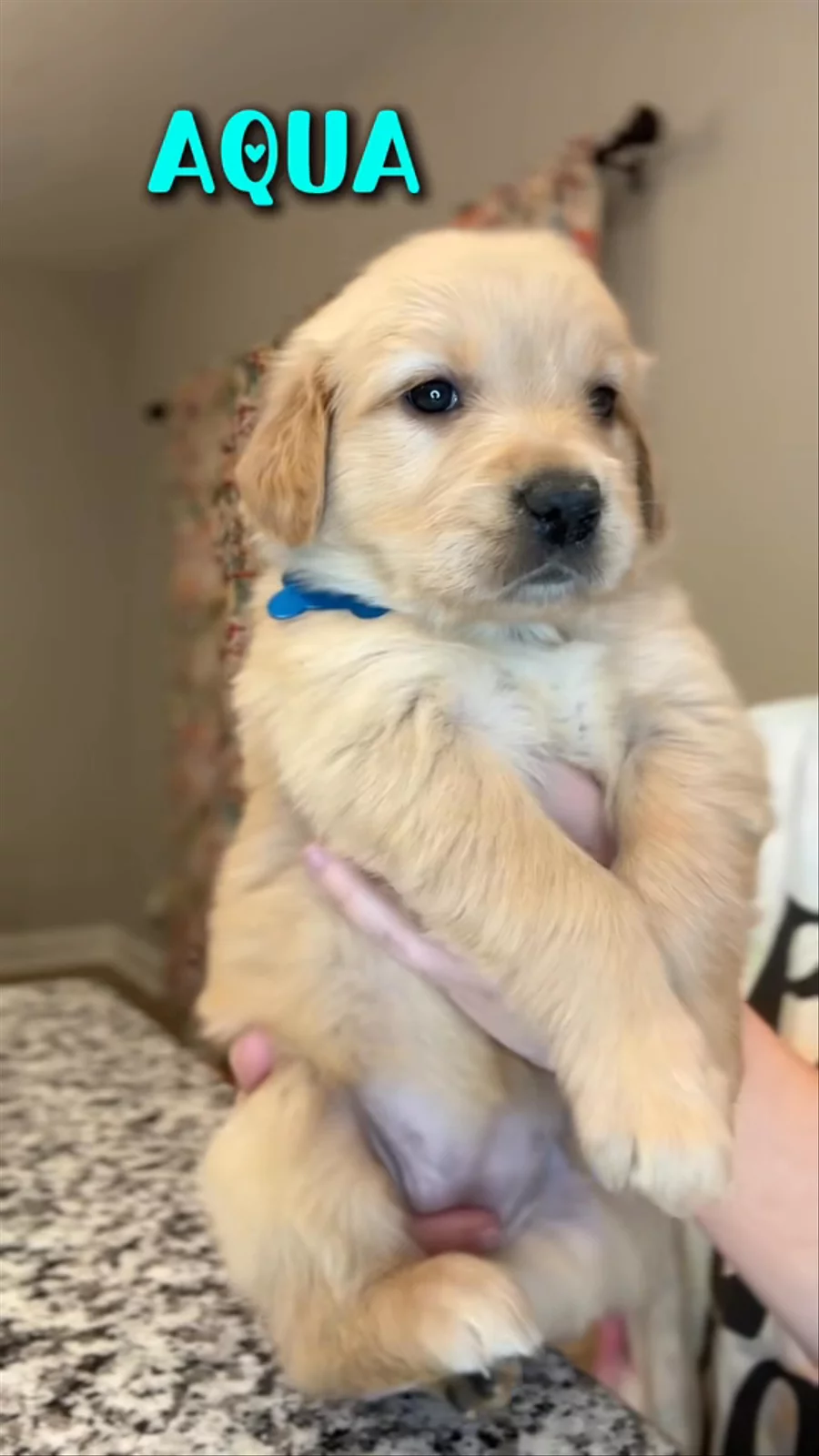 Shug comes from our most popular breeding between Angel and Nelson. Born and raised here just like her mom, Shug has our heart dogs on both sides of her pedigree as well as many champions in conformation and dog sports. We know this line very well and continue to be impressed! Both of her parents and grandparents have “Excellent” rated hips which only 5% of golden retrievers achieve. Shug is close to a cream color but has rich golden undertones that really shine in the sun. Her coat is extremely manageable without sacrificing the fluff. Shug loves to fetch and a ball of any kind is her favorite!