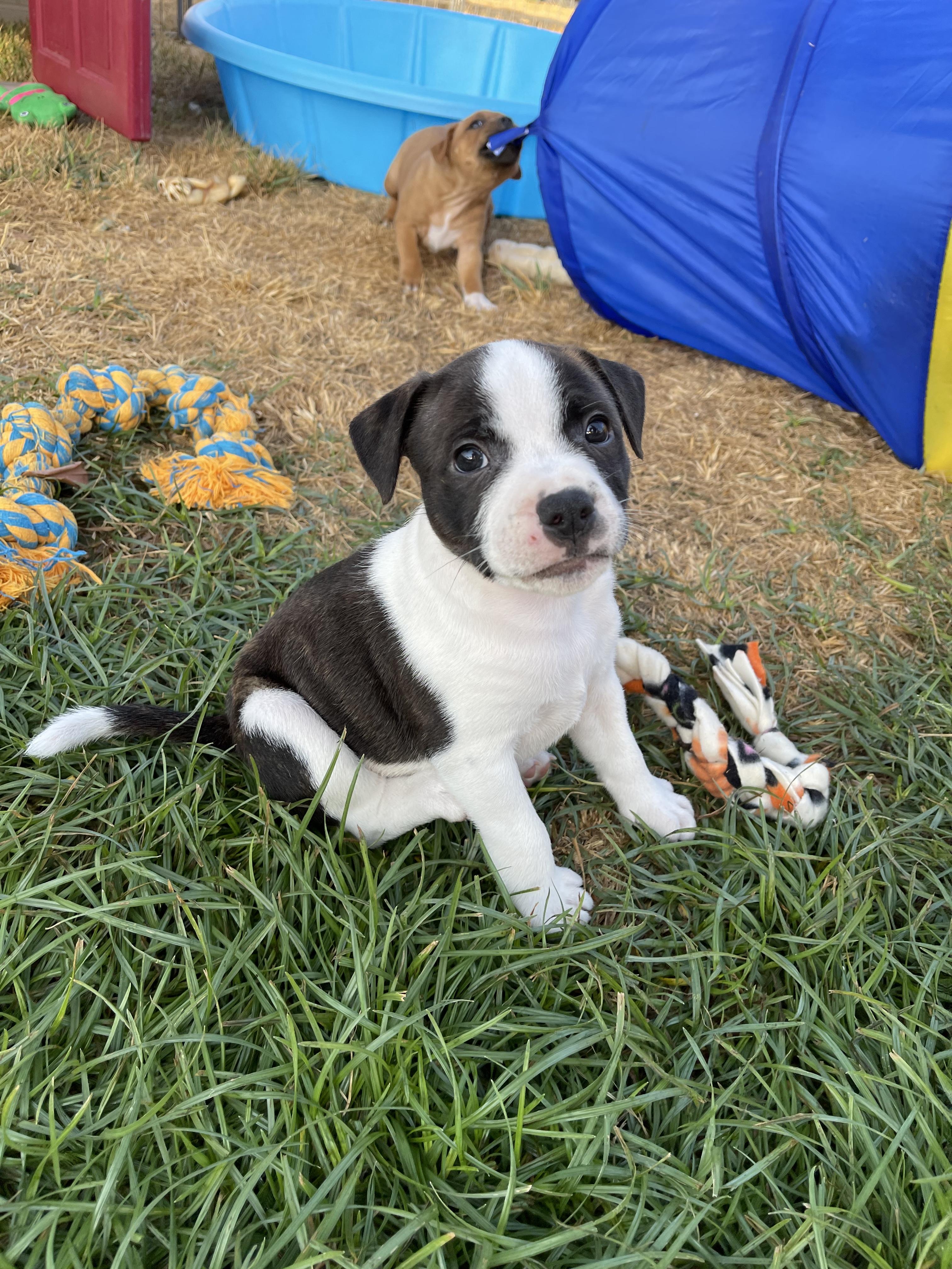 Fritter is a male Staffordshire Bull Terrier. Carefully selected as a great representative of his breed, Jessi decided to make him part of their program. Jessi has passed Good Dog’s screening process, which involved a review of their breeding practices, environment, and the mental and physical health of their dogs.