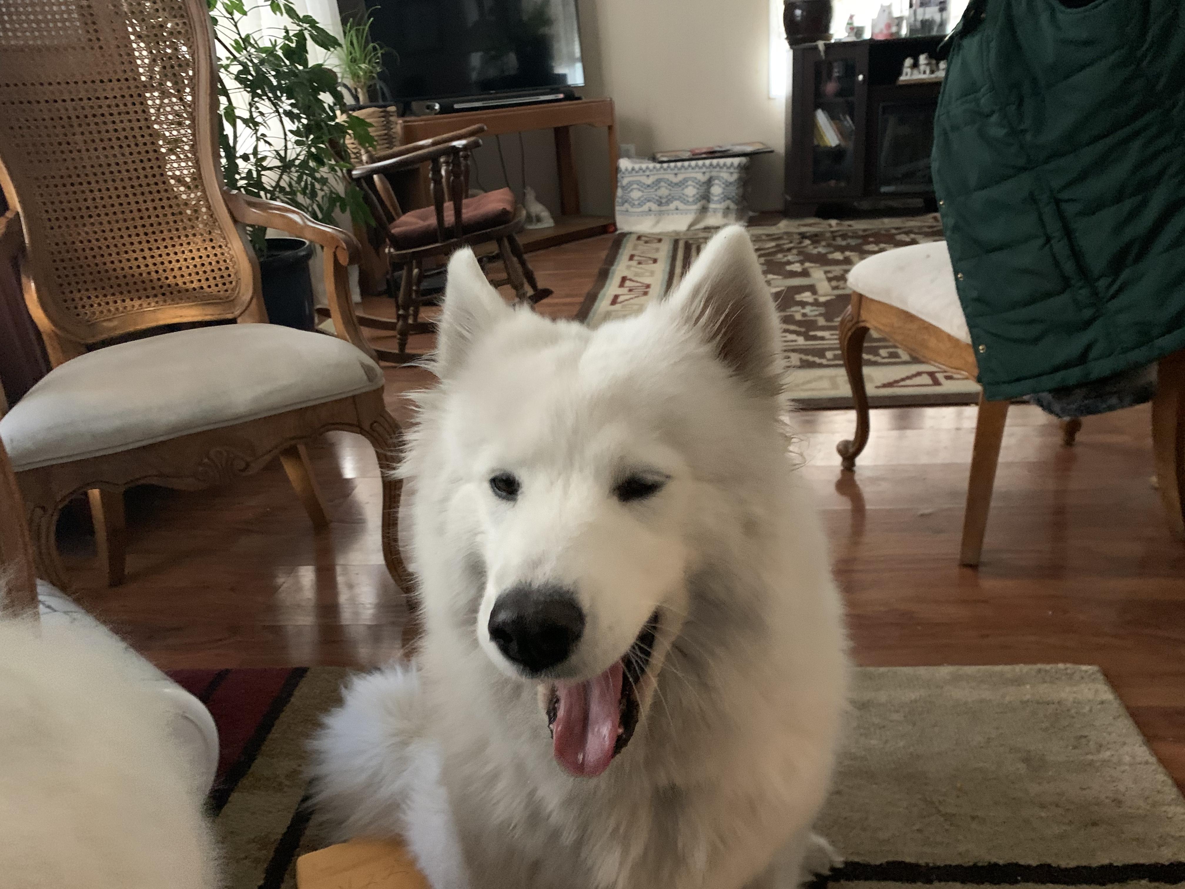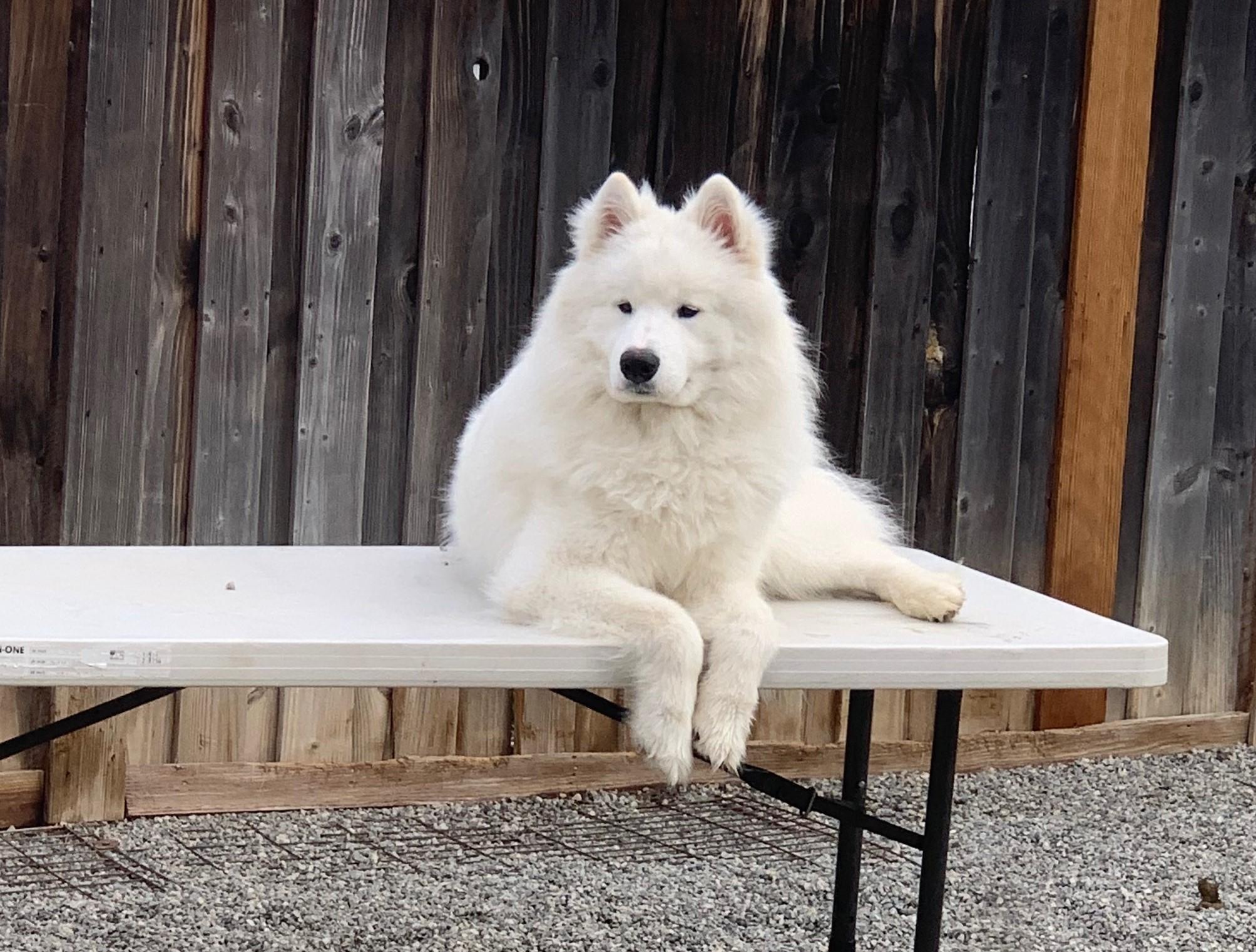 Casey is a male Samoyed. Carefully selected as a great representative of his breed, Carole decided to make him part of their program. Carole has passed Good Dog’s screening process, which involved a review of their breeding practices, environment, and the mental and physical health of their dogs.