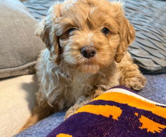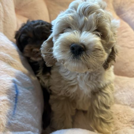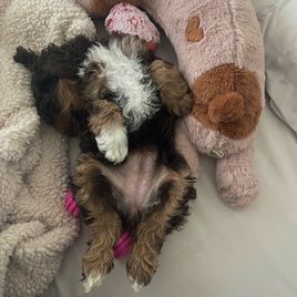 Cay was so great to work with! She was responsive throughout the entire process. We informed Cay upfront of our history with a scammer, and she was kind enough to personally call us to provide reassurance and answer any questions we had. Cay also frequently updated us with photos of our little girl. From day one, Belle excelled at alerting us (aka crying) when she needs to use the bathroom, which provided a great start to potty training. It’s very apparent that Cay works with her puppies and deeply cares for them. We’ve had her for 4 days now and she’s so sweet, cuddly, and sometimes feisty. She’s made a perfect addition to our family!