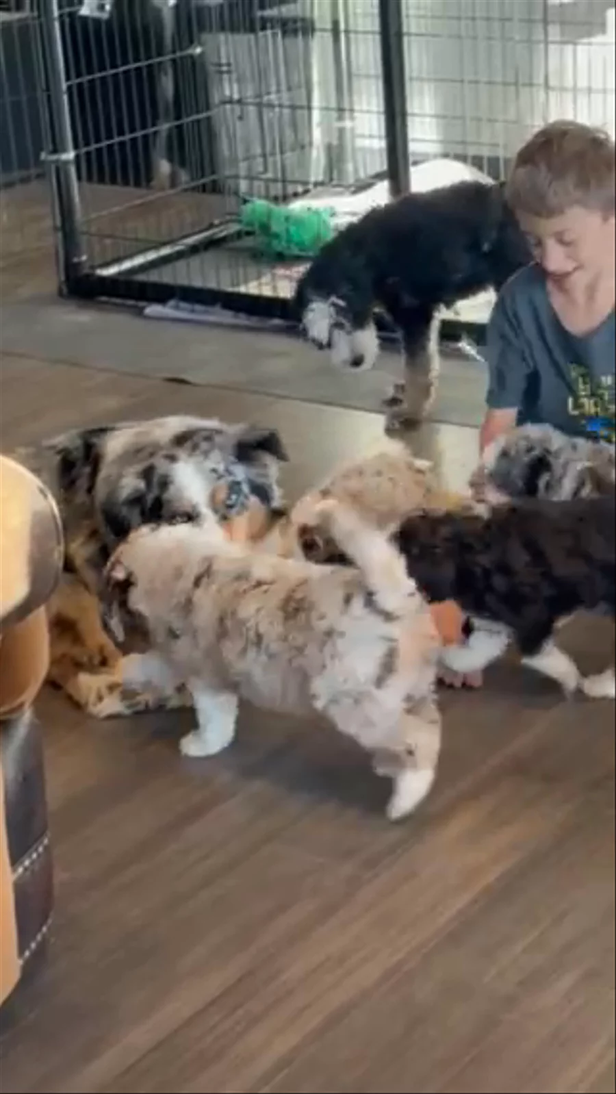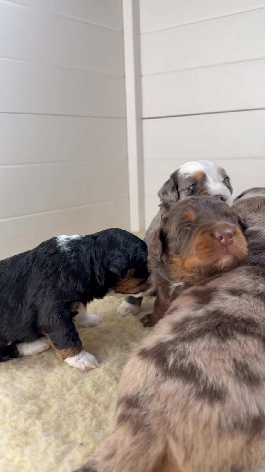 Every day in our toddler room, we introduce one new exposure item to help these little Aussie Mountain Doodle minds grow confident, curious, and resilient. 💛 Today’s challenge? Objects that move and make noise all on their own — no puppy needed to activate them! Think wobbling toys, little spinning gadgets, and gentle sound-makers that surprise them just enough to spark curiosity without causing fear. It’s incredible to watch their tiny brains work: 🐾 A pause… 🐾 A head tilt… 🐾 A brave little step forward… 🐾 And then full-on exploration mode! This stage of development is all about building strong, empowered puppies who handle new experiences with confidence and joy — the very foundation of amazing future family dogs. Follow along for more of our daily exposure adventures! 💕🐶✨ #SassyPantsPups #AussieMountainDoodles #PuppyExposure #PuppyCulture #ConfidentPuppies #EarlySocialization #DoodleBreeder #RaisingThemRight