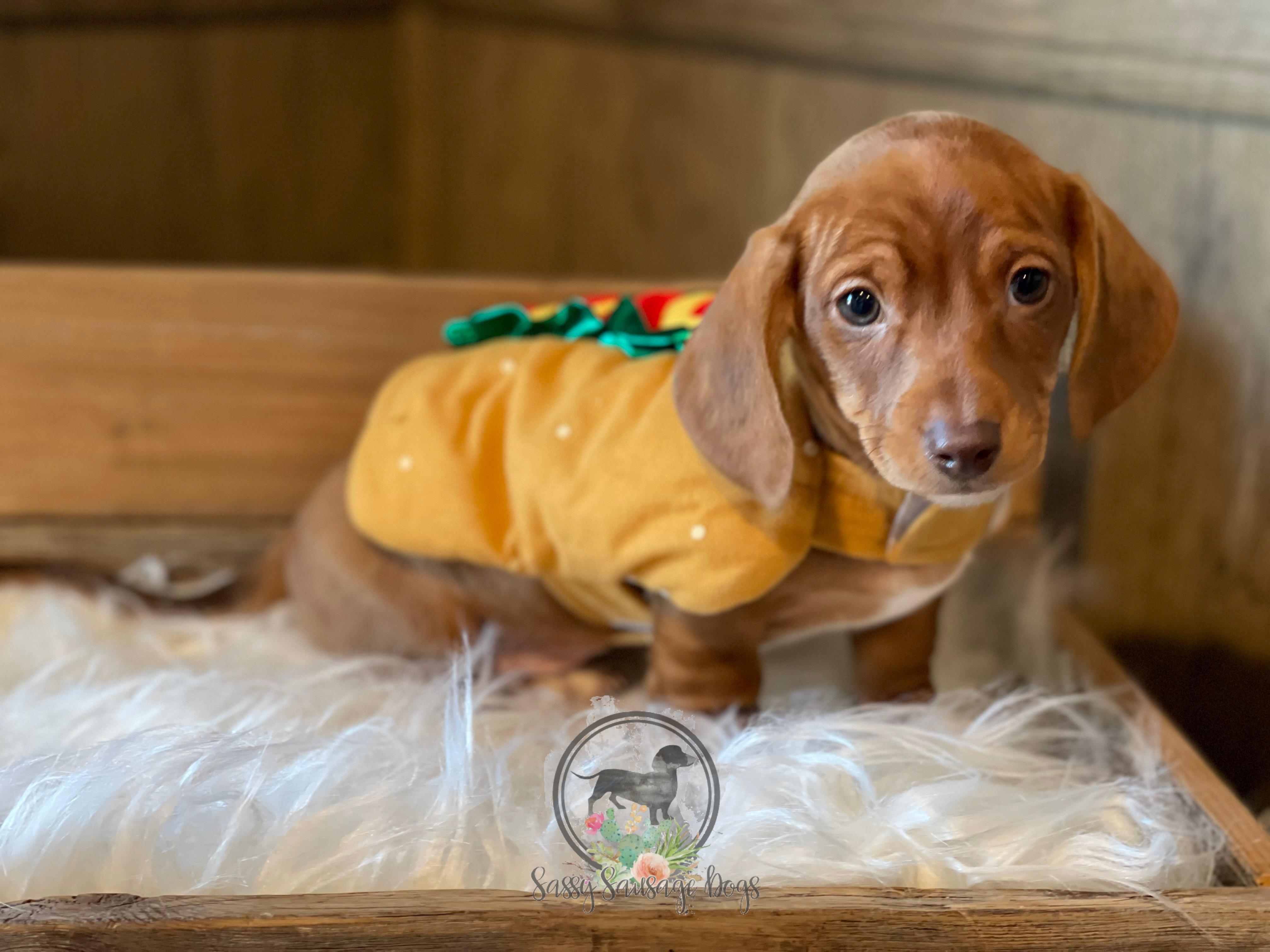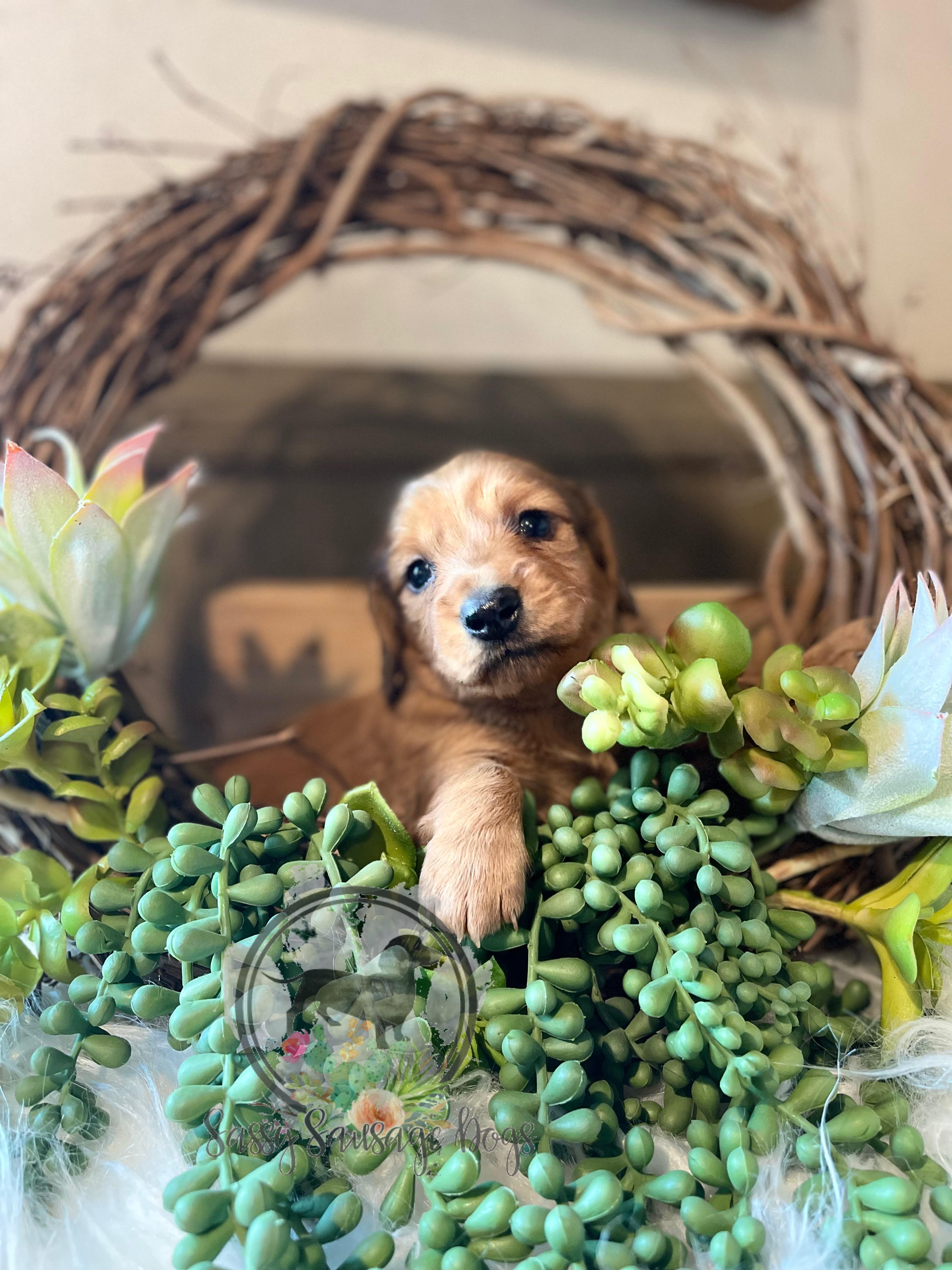 Sugar is a female Dachshund. Carefully selected as a great representative of her breed, Chelsea decided to make her part of their program. Chelsea has passed Good Dog’s screening process, which involved a review of their breeding practices, environment, and the mental and physical health of their dogs.
