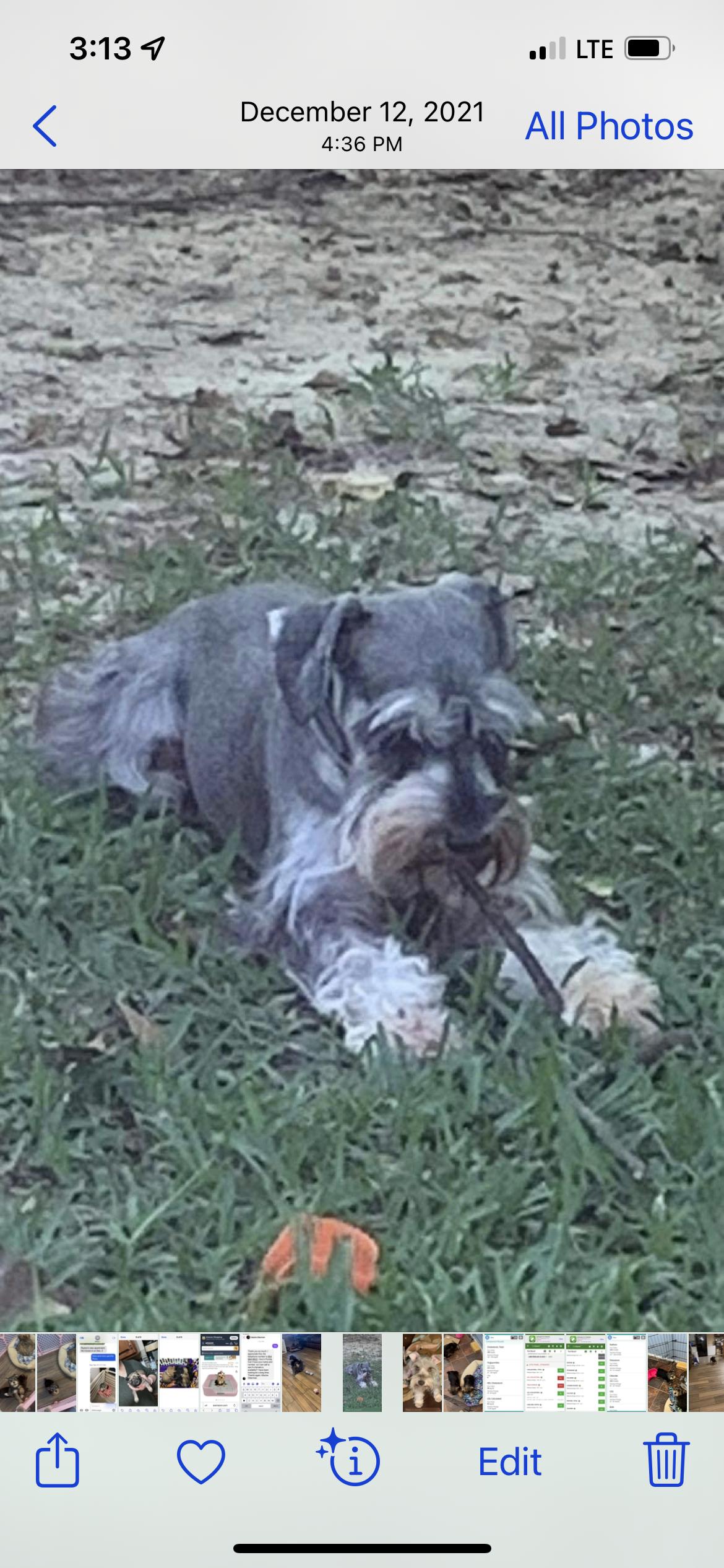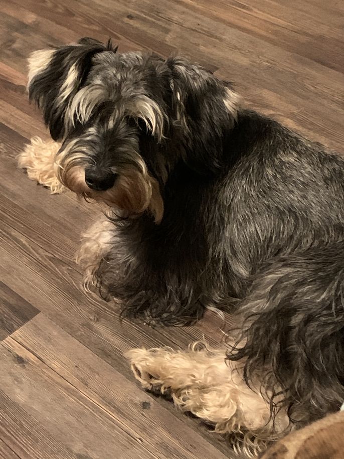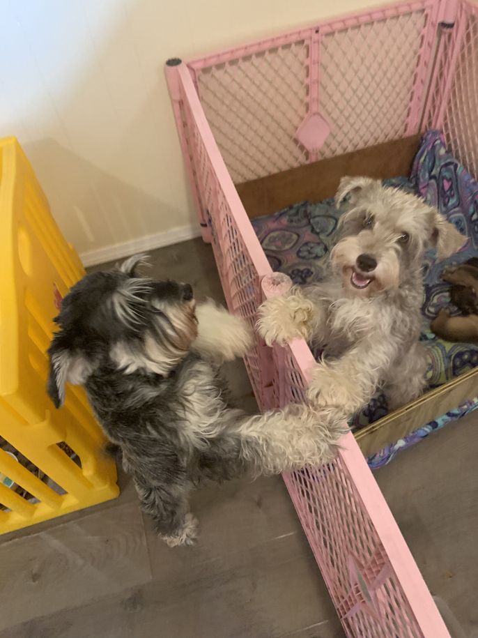 Dollie is a Party Schnauzer she’s Gonzo and Gingers little girl. Dollie is very smart just like mom and dad. She loves to play and is a sweetheart