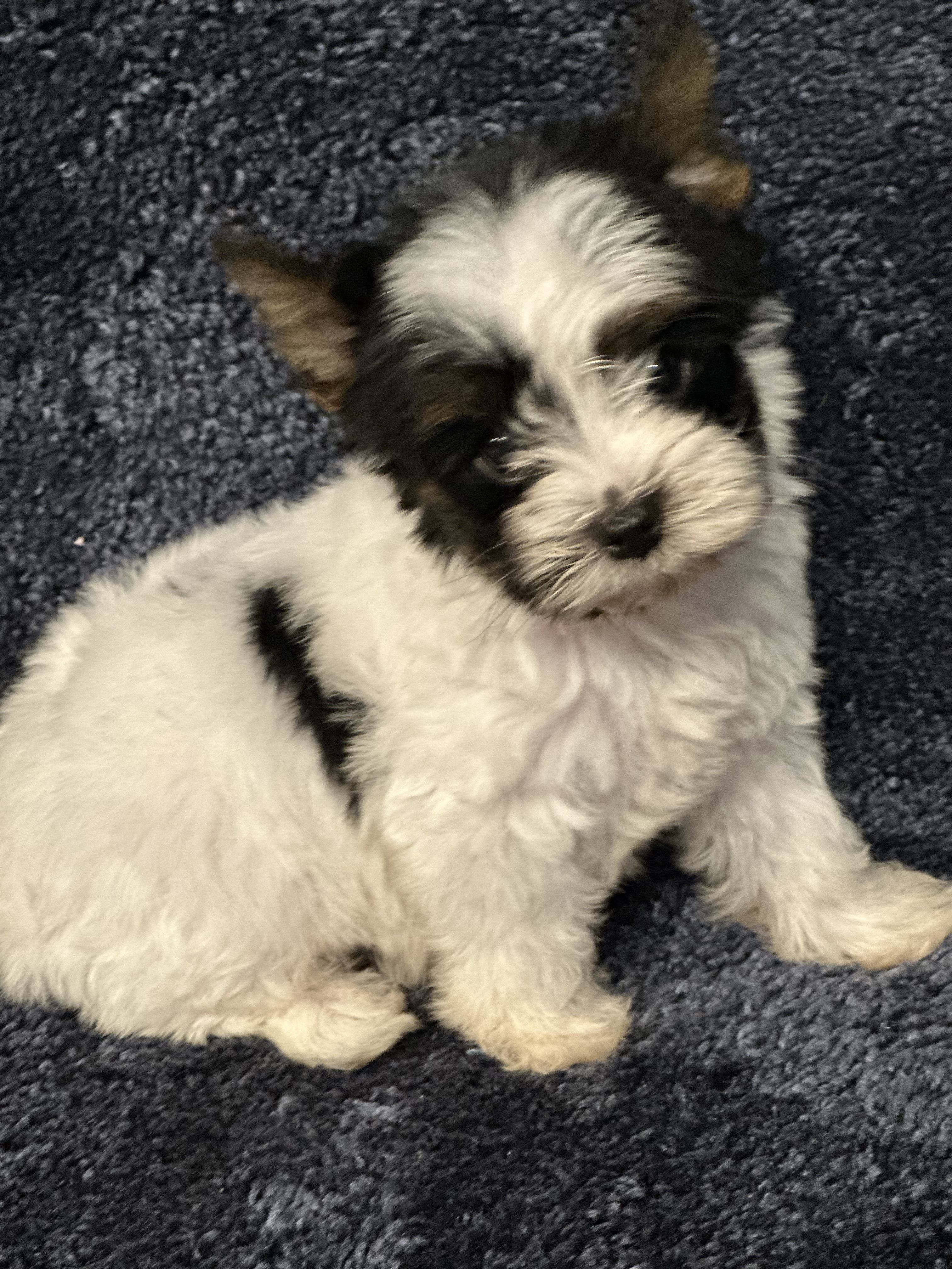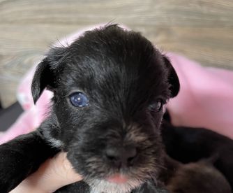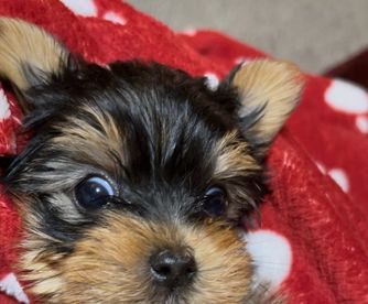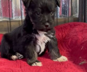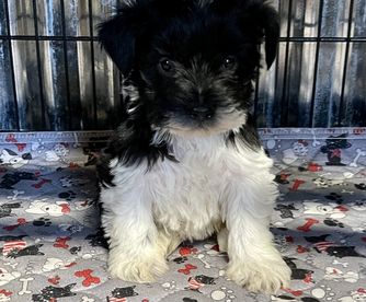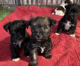 Our Miniature Schnauzer puppies include parti, liver, and black. Yorkshire Terrier puppies are black and gold. Colors will vary depending on the parent dogs.