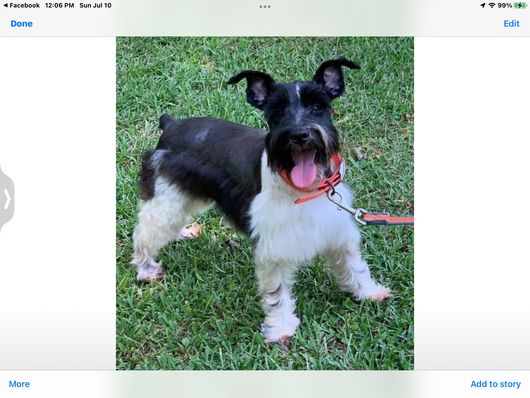 Nelson’s Jake is a male Miniature Schnauzer. Carefully selected as a great representative of his breed, Lisha decided to make him part of their program. Lisha has passed Good Dog’s screening process, which involved a review of their breeding practices, environment, and the mental and physical health of their dogs.