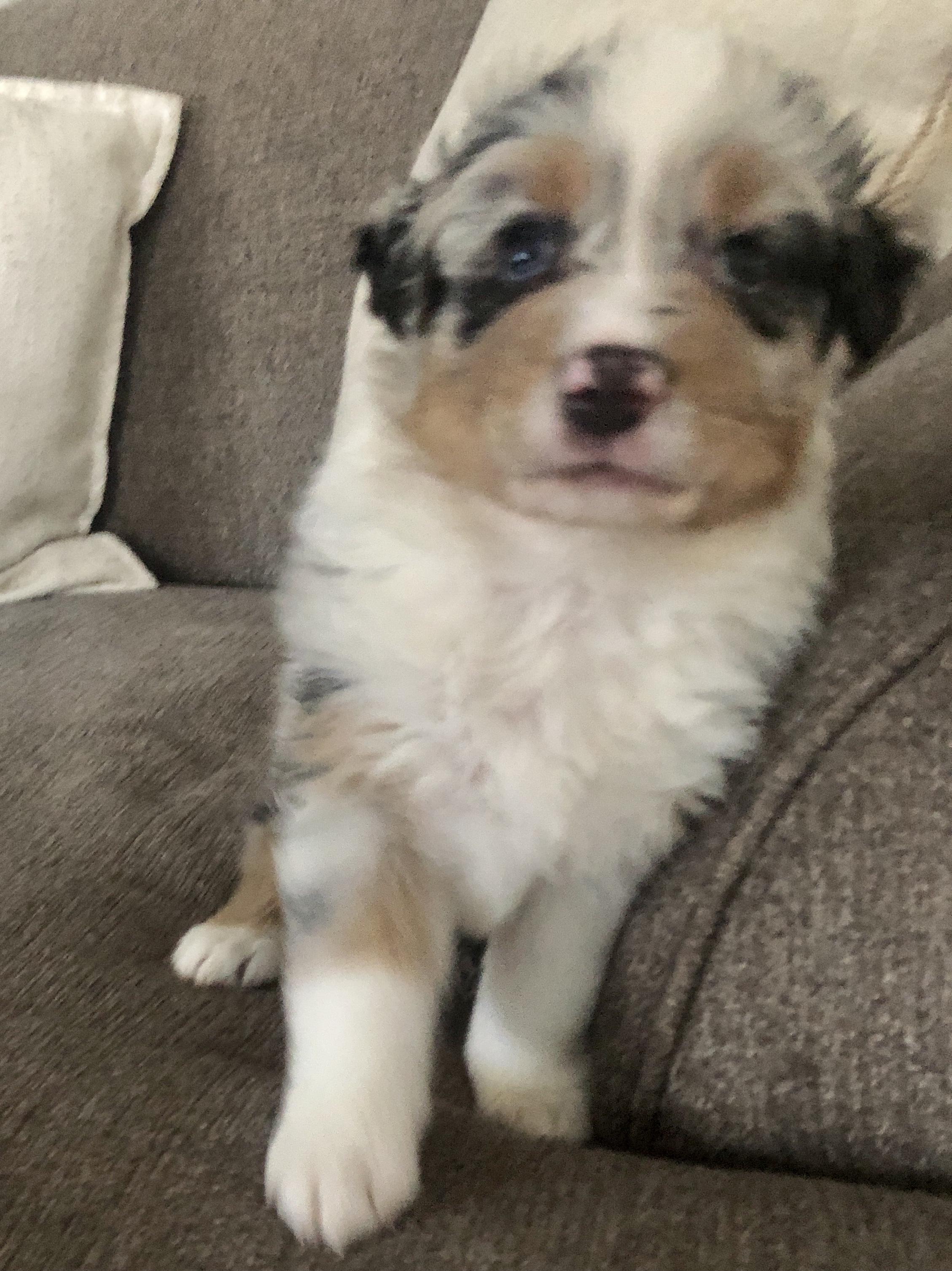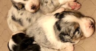 Our puppies include red merle and blue merle. Colors will vary depending on the parent dogs.