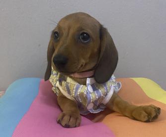 About a week and half ago we purchase a Dachshund puppy from Lucy, she was wonderful throughout the whole transaction and went the extra mile for us to pick Mickey M up.