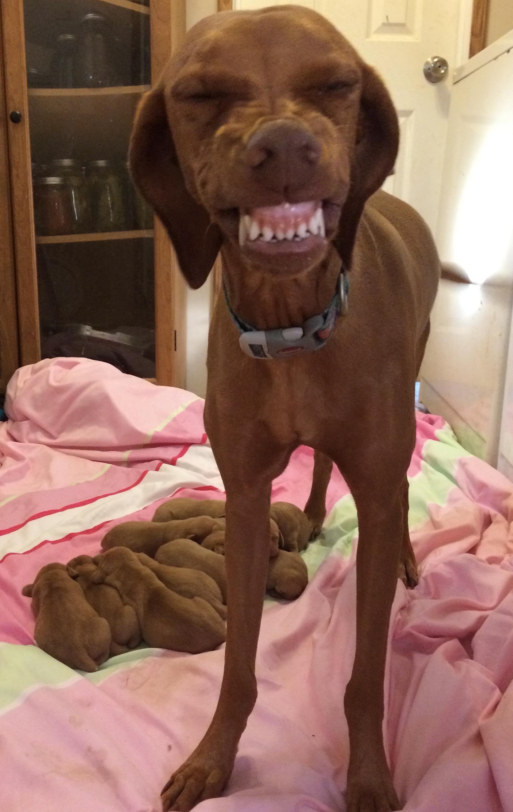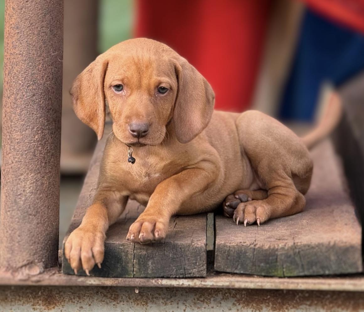 Hatch is a male Vizsla. Carefully selected as a great representative of his breed, Sarah decided to make him part of their program. Sarah has passed Good Dog’s screening process, which involved a review of their breeding practices, environment, and the mental and physical health of their dogs.