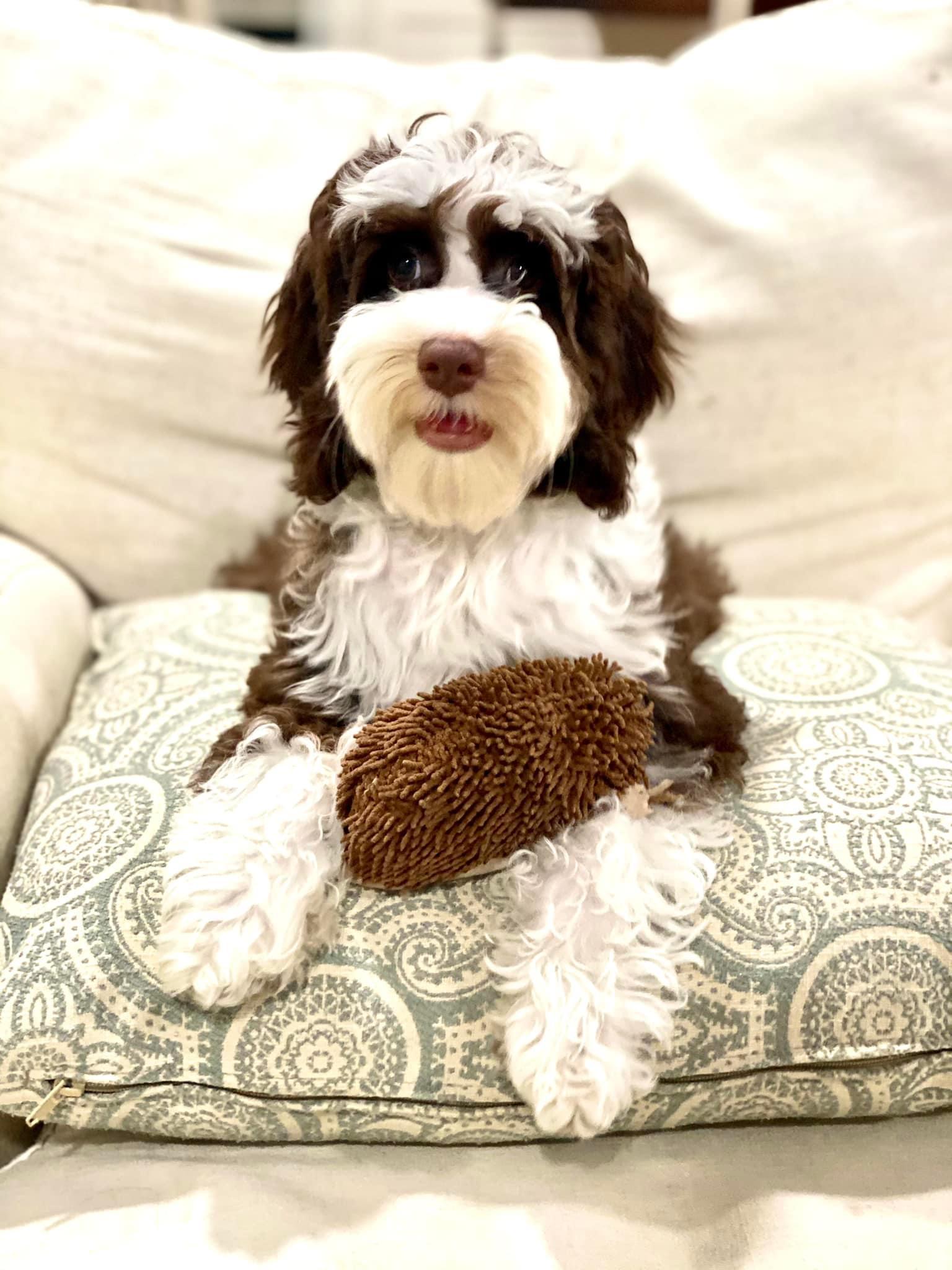 Cindy is a female Australian Labradoodle. Carefully selected as a great representative of her breed, Jason & Courtney decided to make her part of their program. Jason & Courtney has passed Good Dog’s screening process, which involved a review of their breeding practices, environment, and the mental and physical health of their dogs.
