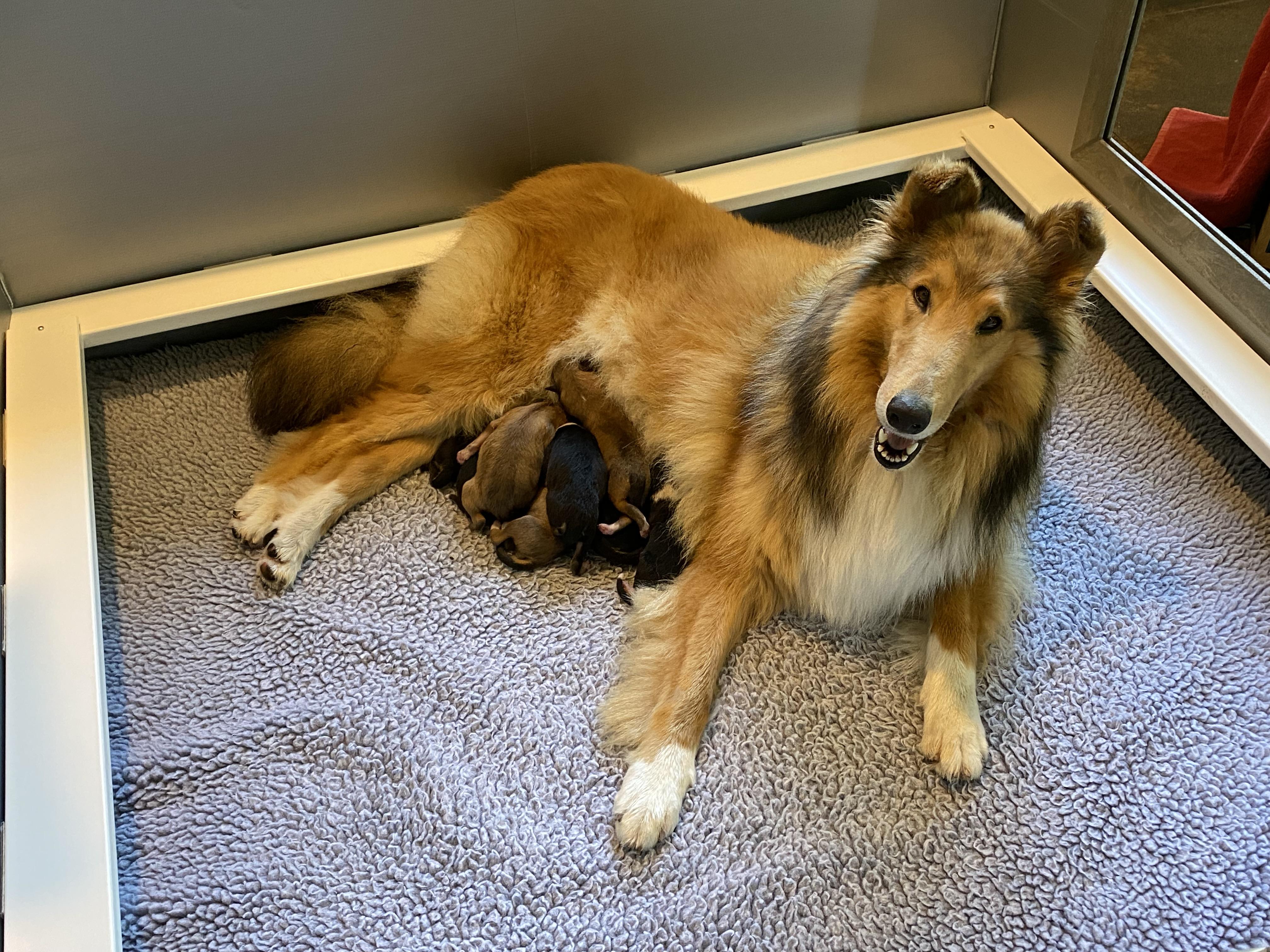 Curry is a fabulous mother! She takes great care of her pups. She is also a tremendous performance dog who competes in obedience, rally and herding. She is extremely biddable and easy to live with. She is gorgeous with a shaded red sable color, tight fitting coat with beautiful furnishings that does not mat.