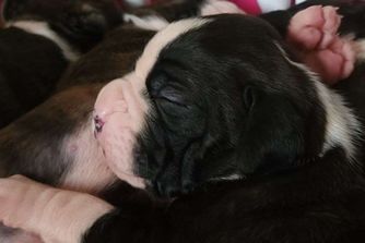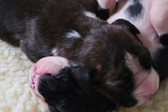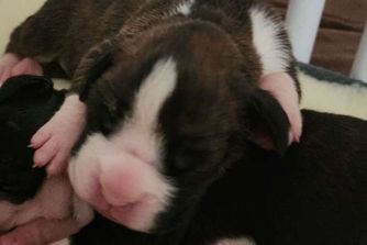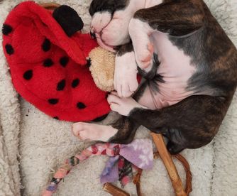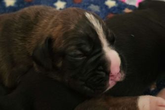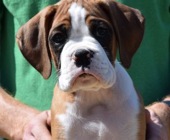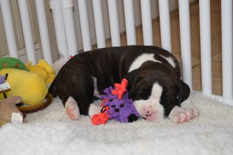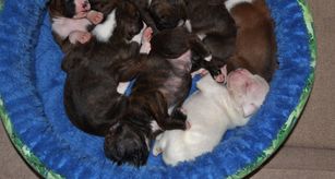 Our puppies include fawn, brindle, and white. Colors will vary depending on the parent dogs.