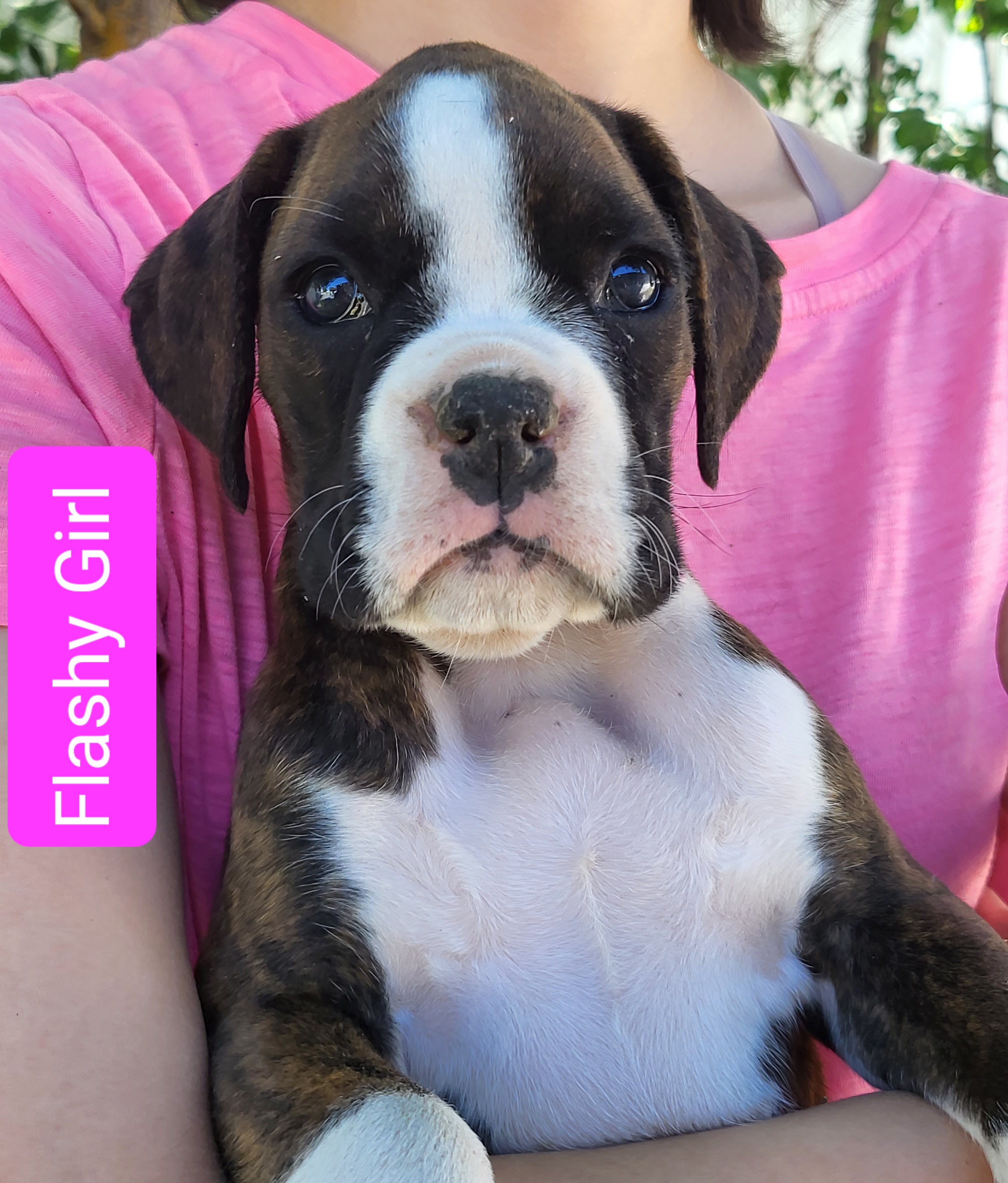 Our line of Boxers are known for their deep, dark reverse brindle color. This is our signature thing and in my opinion, there is nothing prettier than a dark, dark brindle Boxer. Flashy or Classic, makes no difference. Our dogs are true beauties!