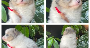 Our puppies include cream parti, blue parti, chocolate parti, cream sable parti, cream, black, blue, white, black and tan, beaver, chocolate merle, red sable, blue and tan, wolf sable, beaver sable, tri-colored, and blue merle. Colors will vary depending on the parent dogs.