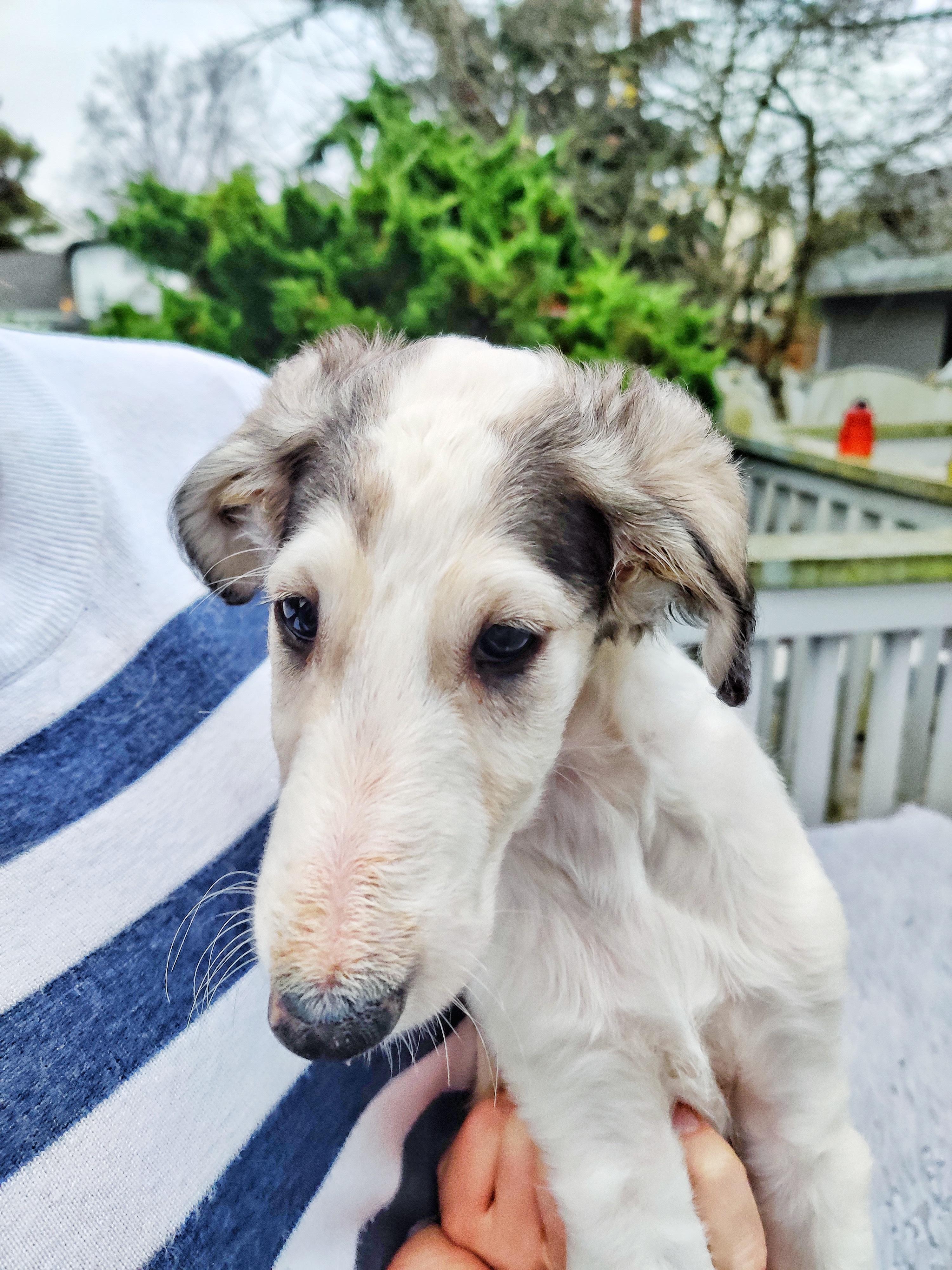I'm Maren C., the breeder behind Saxafrax Borzoi located in Boring, OR. NOTE: We will only place puppies within a 1 day's drive of Northern WA or Northern OR. We strive to preserve the borzoi breed for future generations to admire, live with, and love. We believe preservation requires equal emphasis on the dogs we produce AND the people who love them. We are passionate about connecting the families of our puppies with support through ourselves and the wider sighthound community. In order to achieve preservation goals in our breeding program, we believe it is essential that each breeding: preserve genetic diversity by holding onto rare lines and haplotypes; preserve breed function & form by utilizing dogs with proven coursing ability and conformation ring success; preserve correct, stable & family-safe temperaments, utilizing a blended Puppy Culture & Avidog helping & raising program; preserve overall health and longevity through health testing and pedigree research.